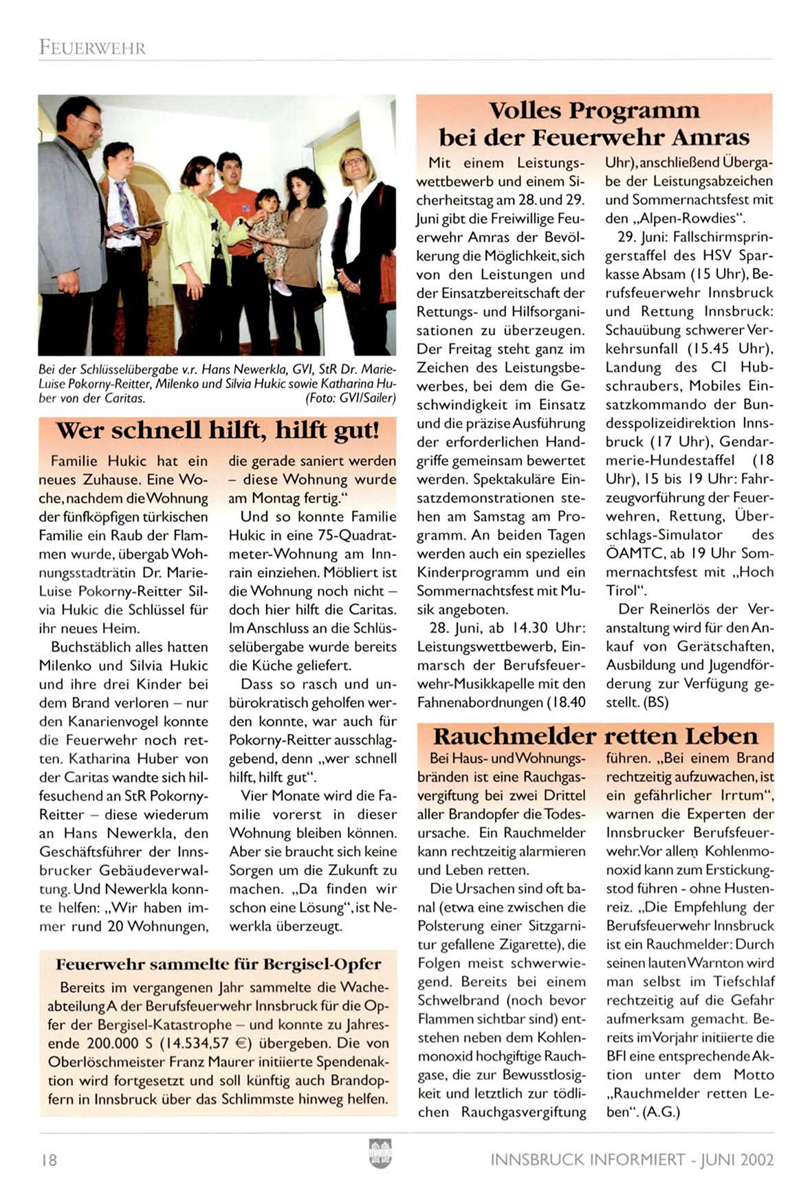 Pokorny-Reitter ausschlagdie Feuerwehr noch retBei Haus- undWöhnungsgebend, denn „wer schnell