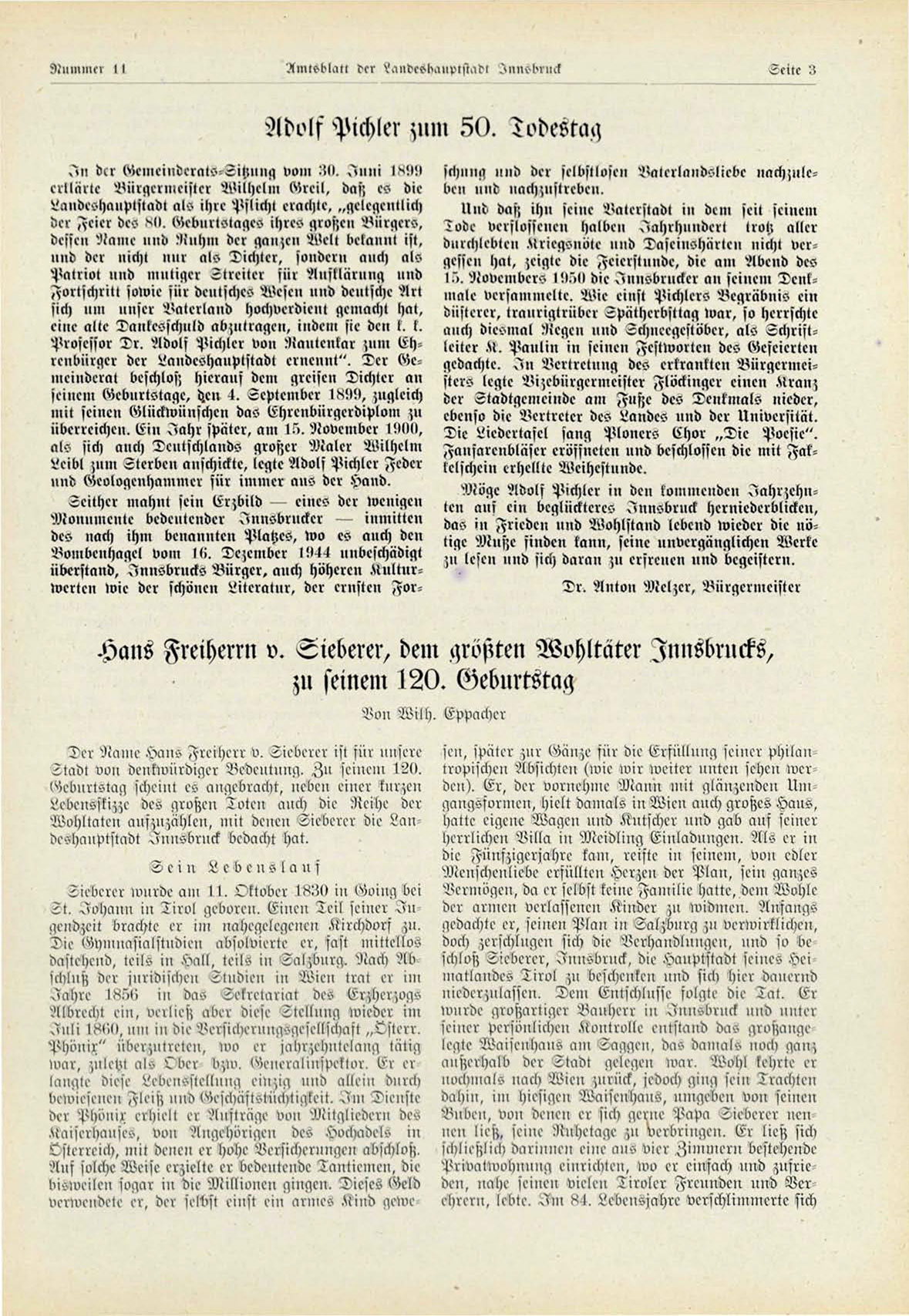 Möge Adolf Pichler in den kommenden Jahrzehnten auf ein beglückteres Innsbruck herniederblicken,