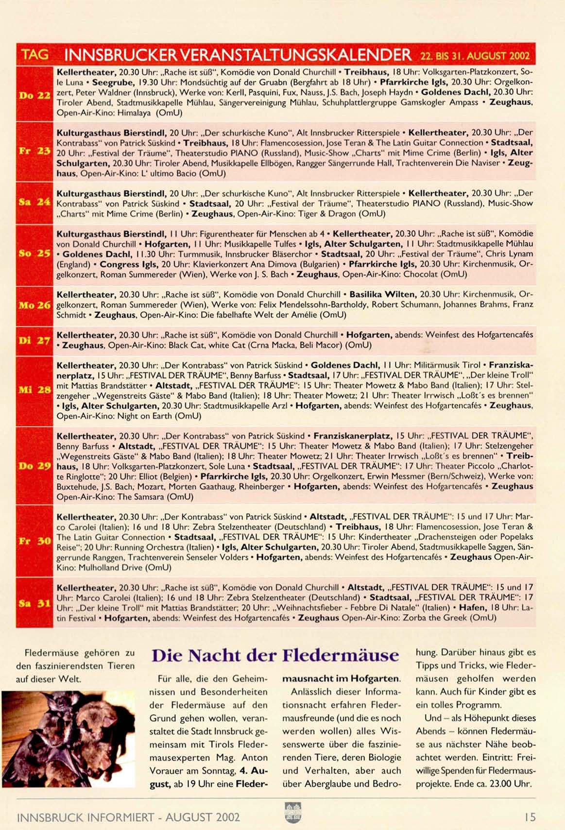 INSBRUCKERVERANSTALTUNGSKALENDER 22. BIS 31.AUGUST 2002