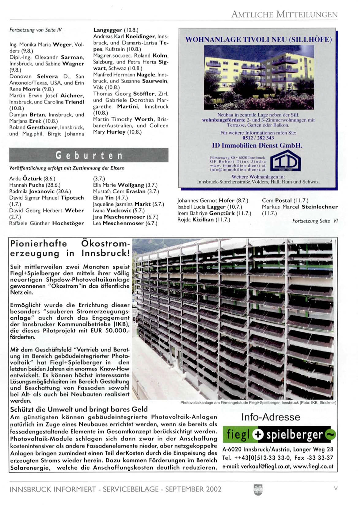 INNSBRUCK INFORMIERT - SERVICEBEILAGE - SEPTEMBER 2002