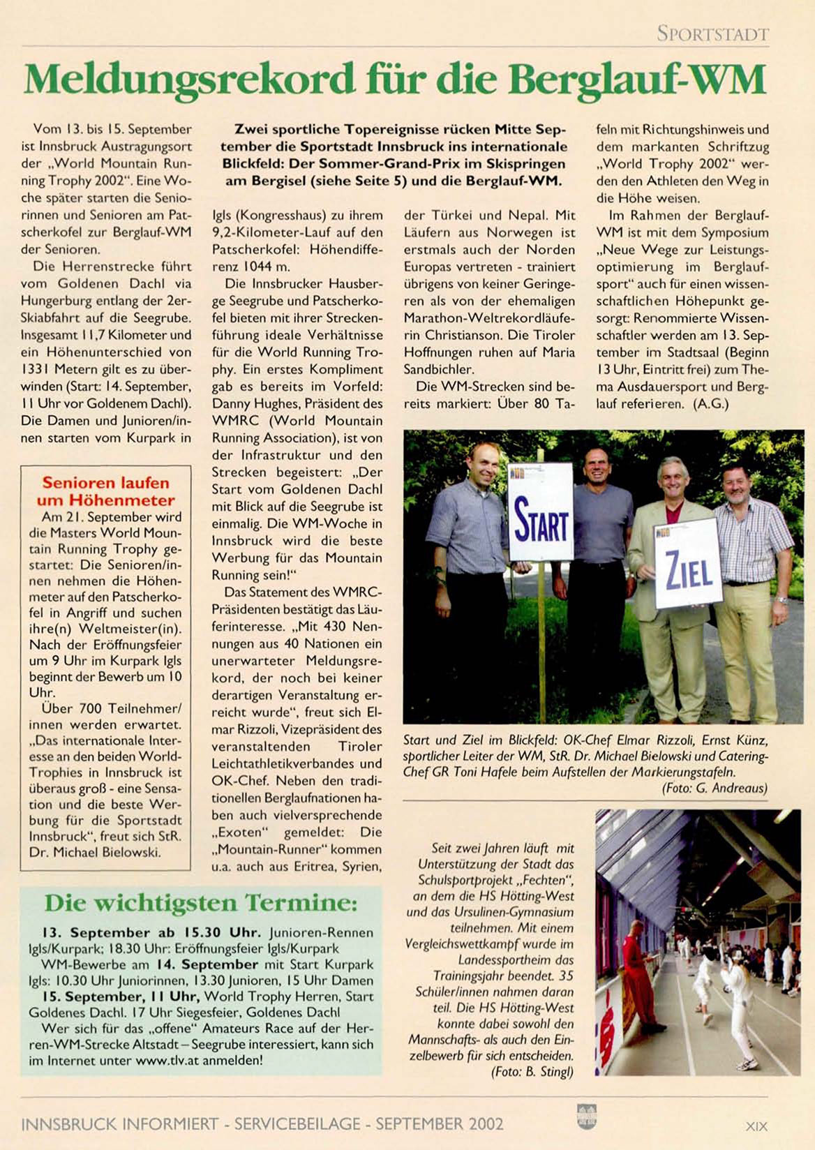 der , . W o r l d Mountain Running Trophy 2002". Eine W o che später starten die Seniorinnen und Senioren am Patscherkofel zur Berglauf-WM