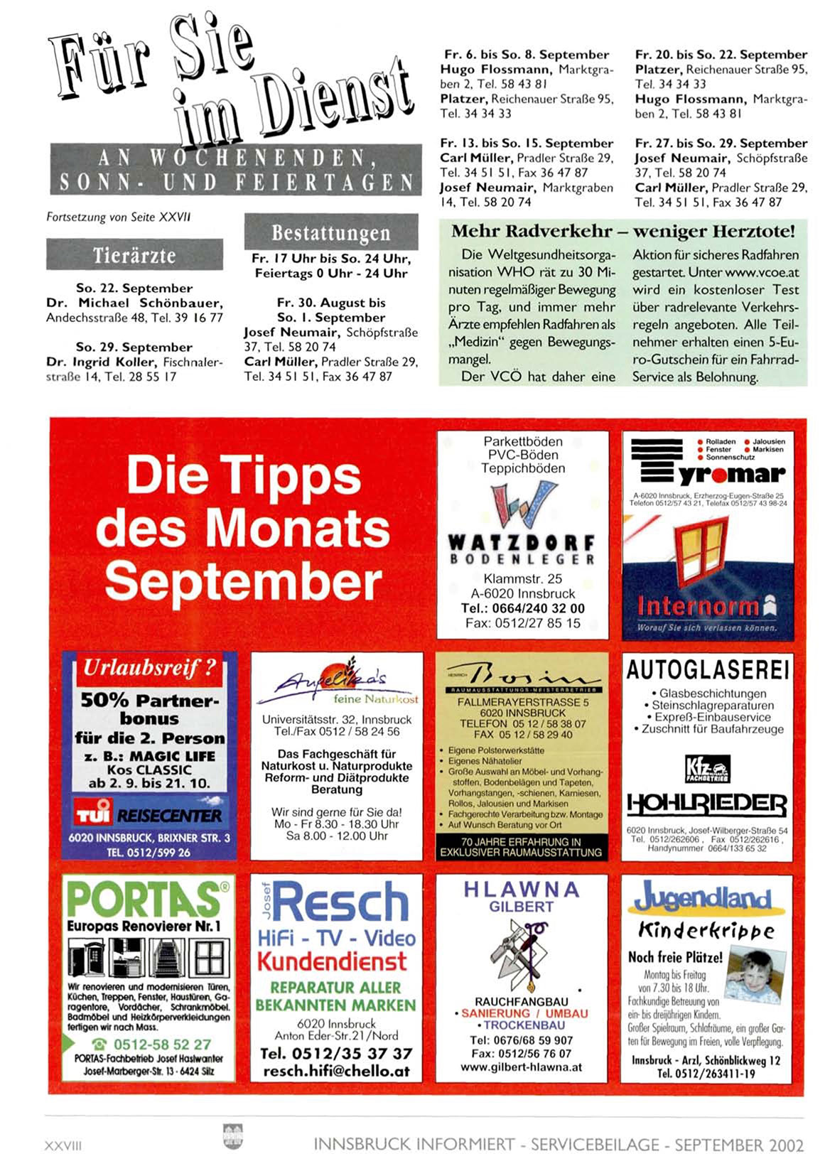 INNSBRUCK INFORMIERT - SERVICEBEILAGE - SEPTEMBER 2002