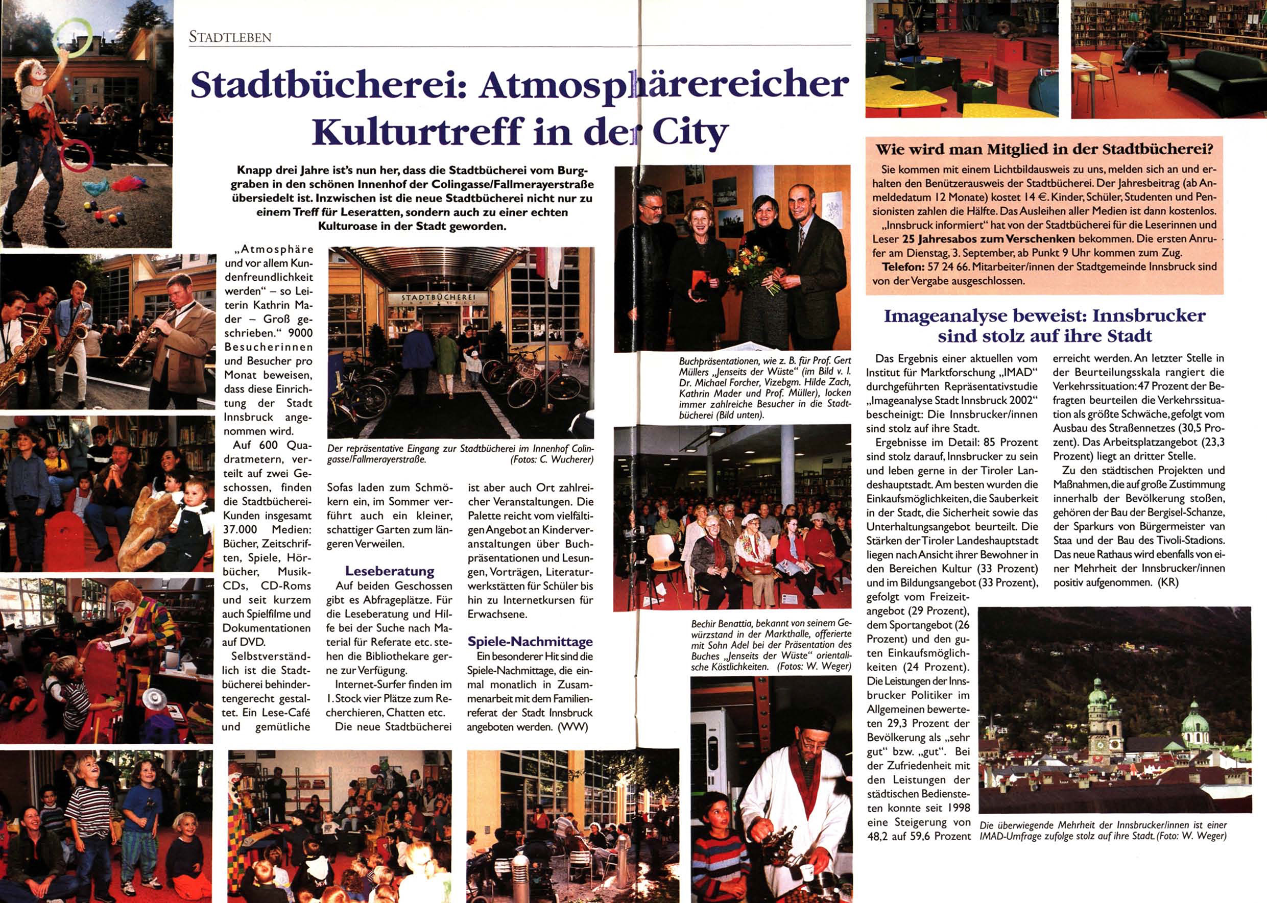 „Imageanalyse Stadt Innsbruck 2002" fragten beurteilen die Verkehrssituaimmer zahlreiche Besucher in die Stadtbücherei (Bild unten).