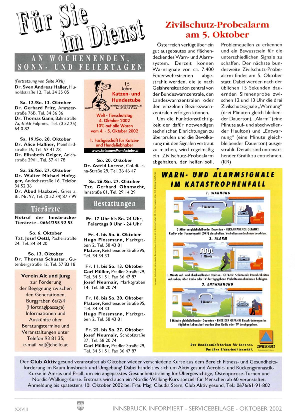 INNSBRUCK INFORMIERT - SERVICEBEILAGE - OKTOBER 2002