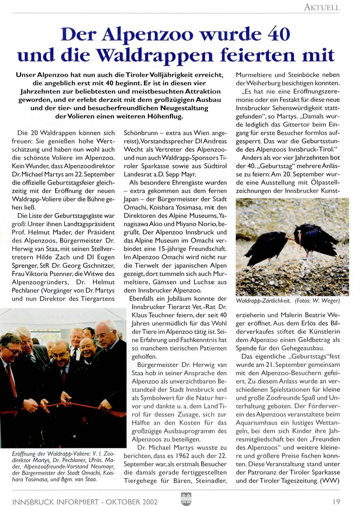Wecht als Vertreter des Alpenzoound nun auch Waldrapp-SponsorsTiroler Sparkasse sowie aus Südtirol