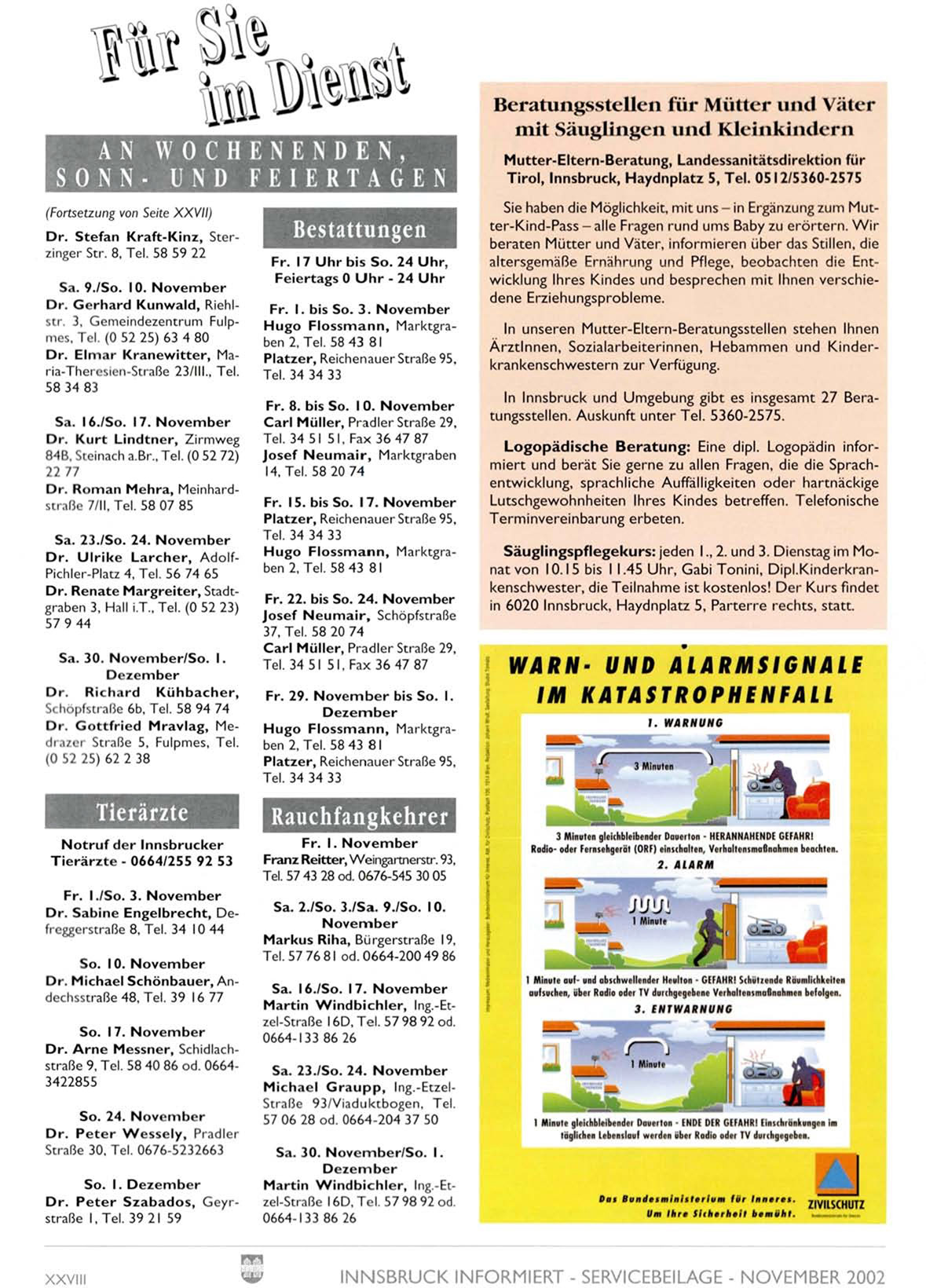 INNSBRUCK INFORMIERT - SERVICEBEILAGE - NOVEMBER 2002