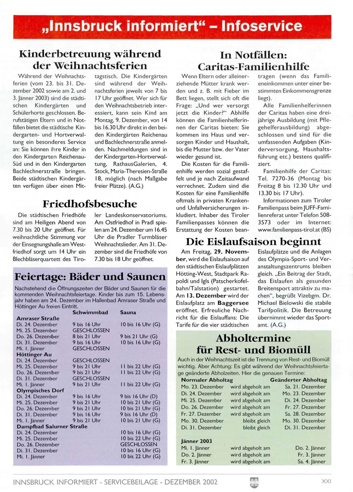 INNSBRUCK INFORMIERT - SERVICEBEILAGE - DEZEMBER 2002