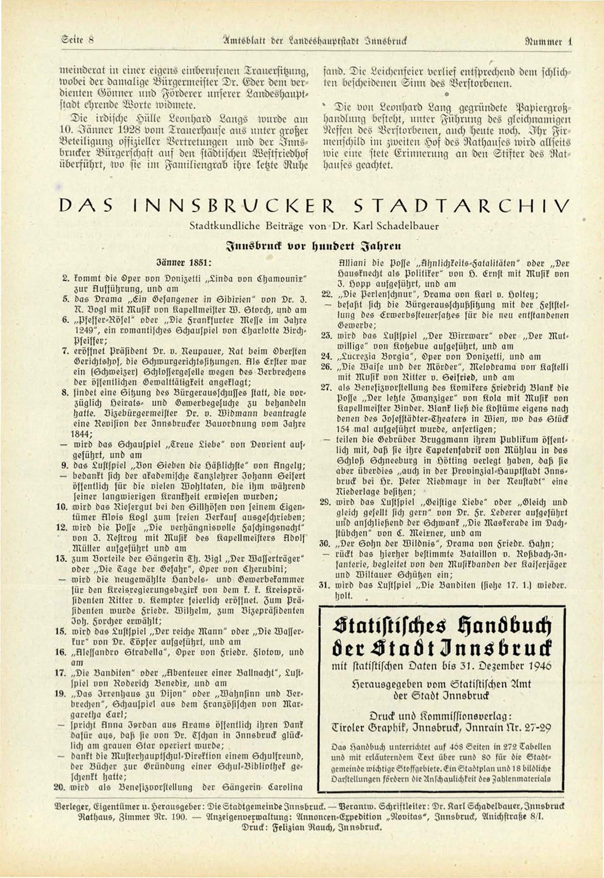 Verleger, Eigentümern. Herausgeber: Die Stadtgemeinde Innsbruck. — Vermuw. ^,christlei!er^ ^-- >>all ^