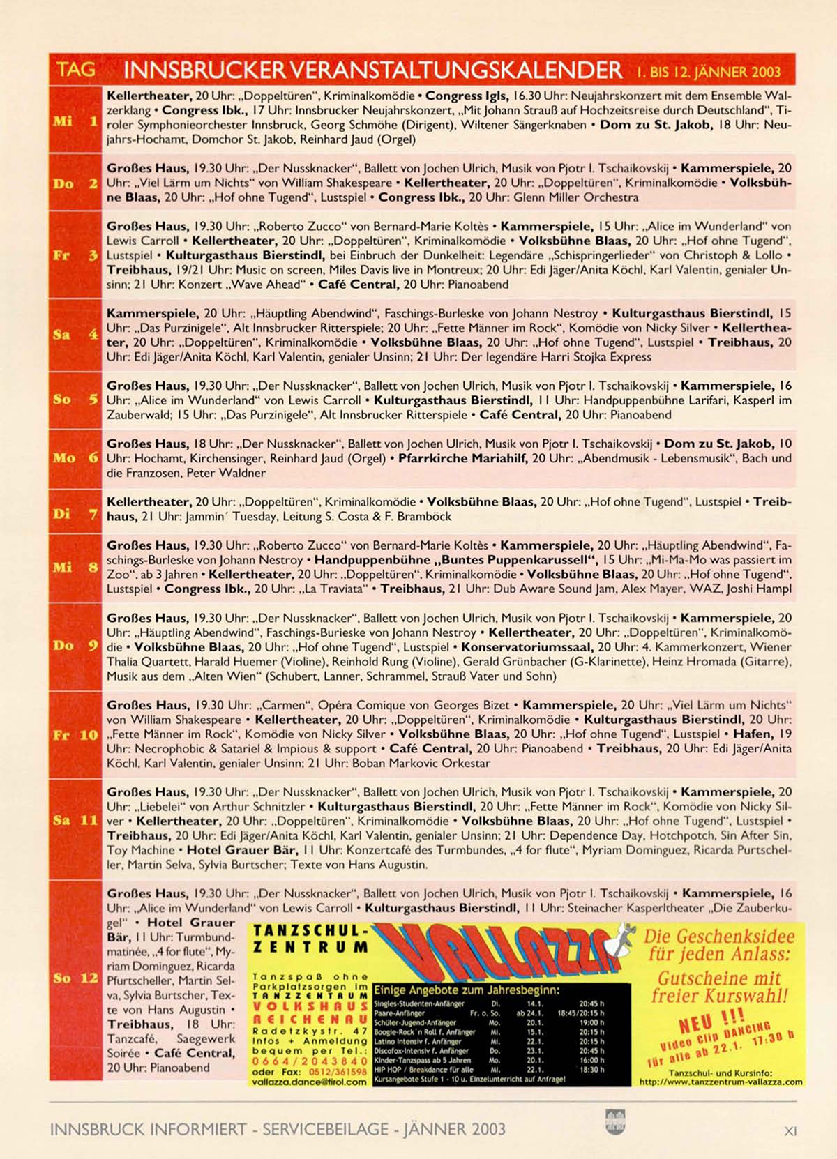 INNSBRUCKER VERANSTALTUNGSKALENDER i. BIS i JÄNNER 2003