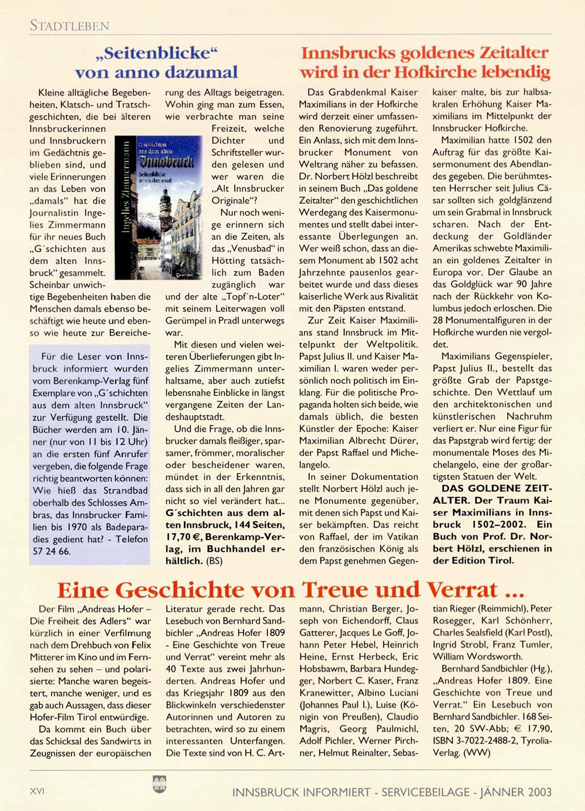 INNSBRUCK INFORMIERT - SERVICEBEILAGE - JANNER 2003