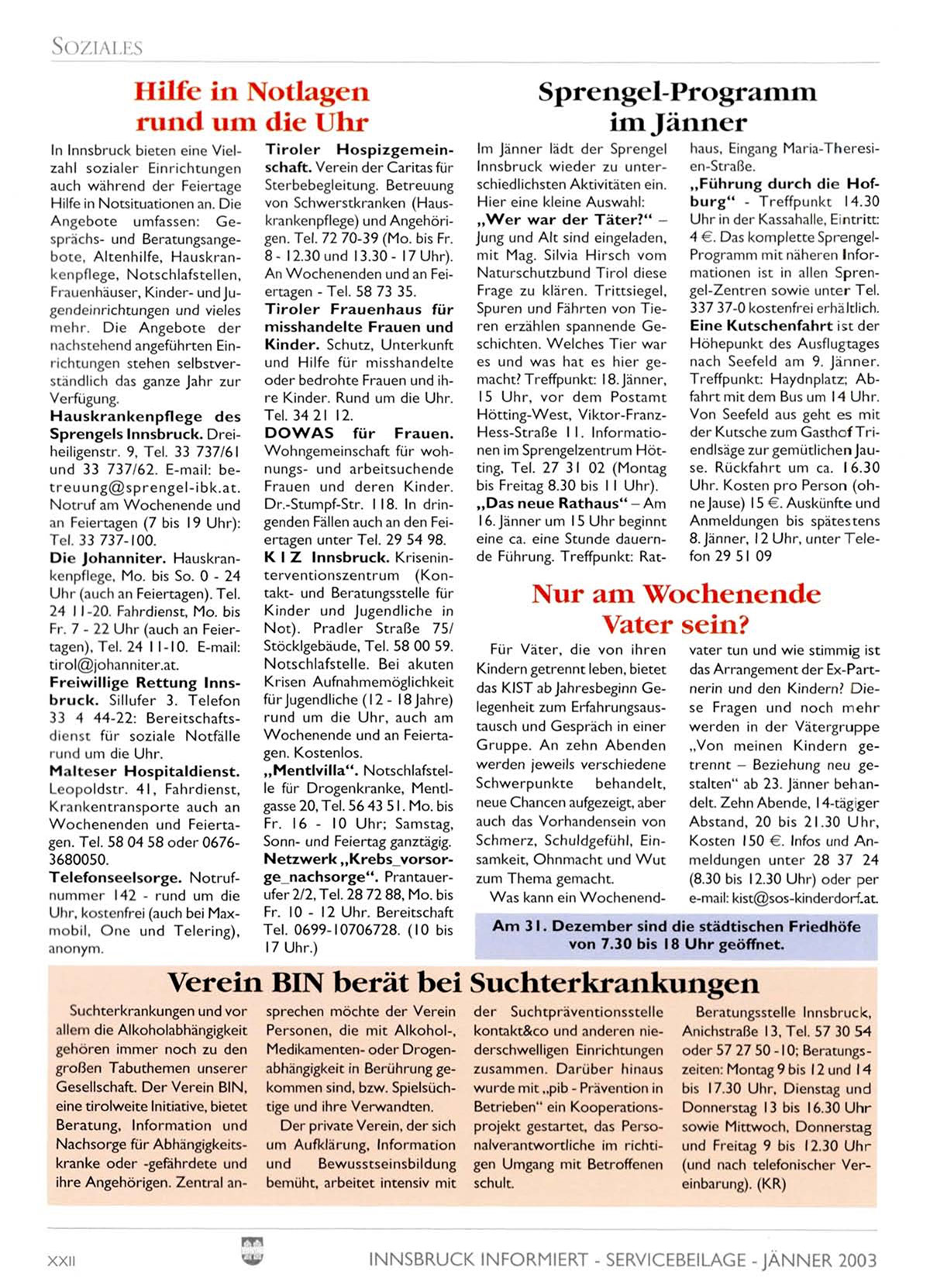 INNSBRUCK INFORMIERT - SERVICEBEILAGE -JÄNNER 2003
