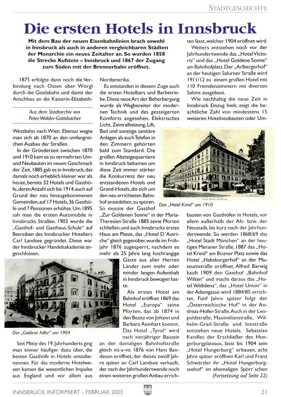 in I n n s b r u c k als a u c h in a n d e r e n v e r g l e i c h b a r e n S t ä d t e n