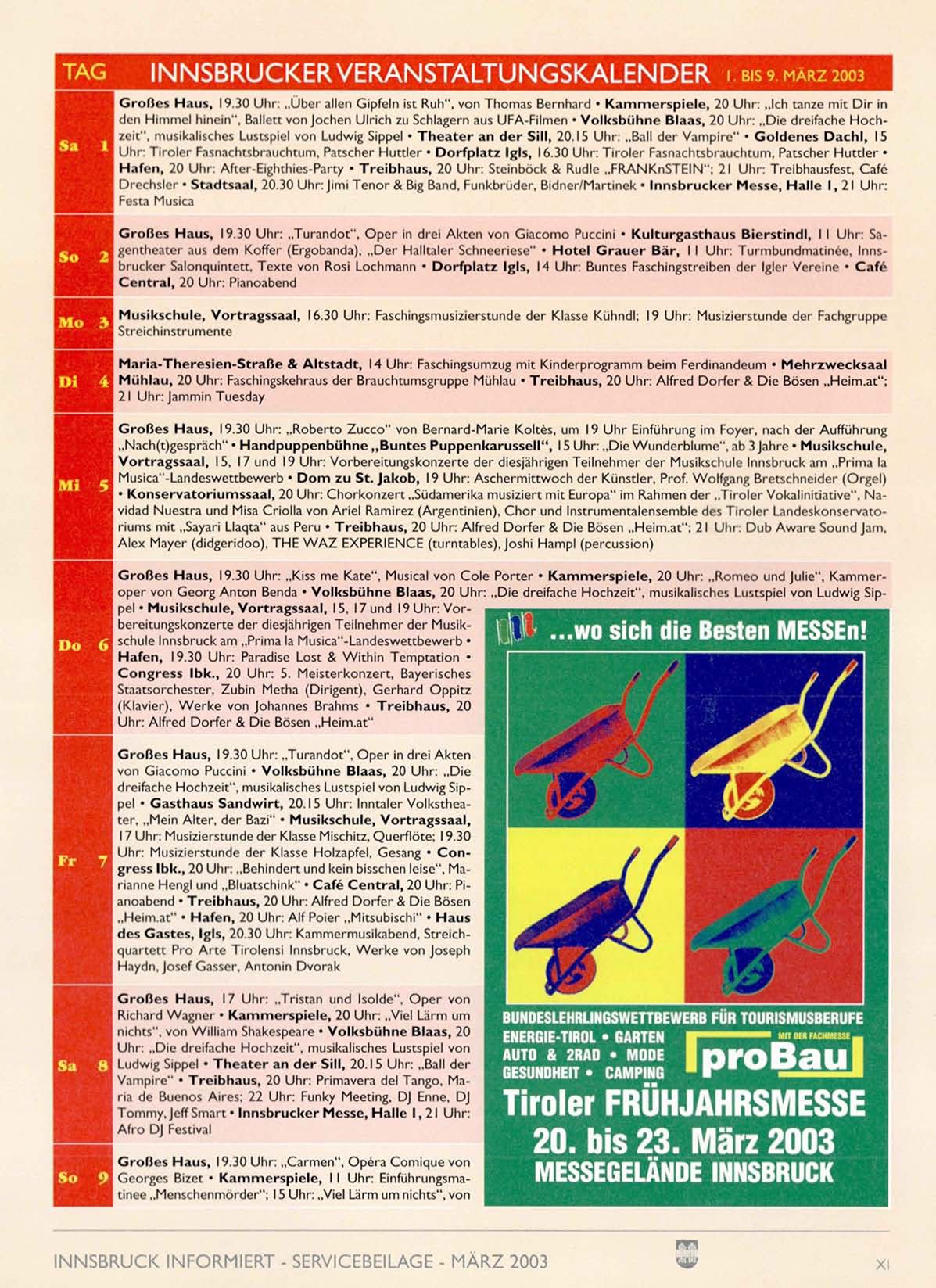 INNSBRUCKER VERANSTALTUNGSKALENDER i. BIS 9. MÄRZ 2003