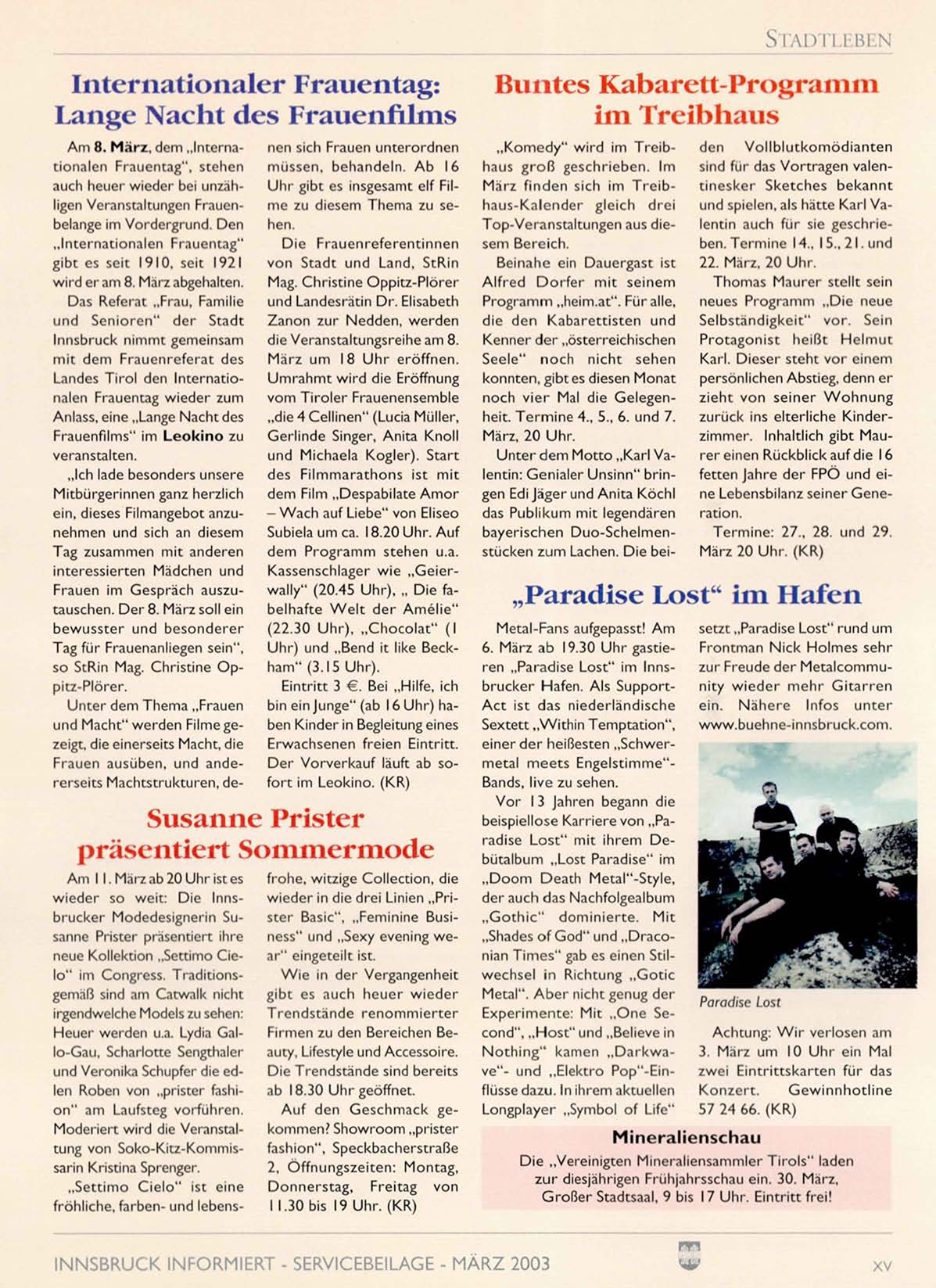 INNSBRUCK INFORMIERT - SERVICEBEILAGE - MÄRZ 2003