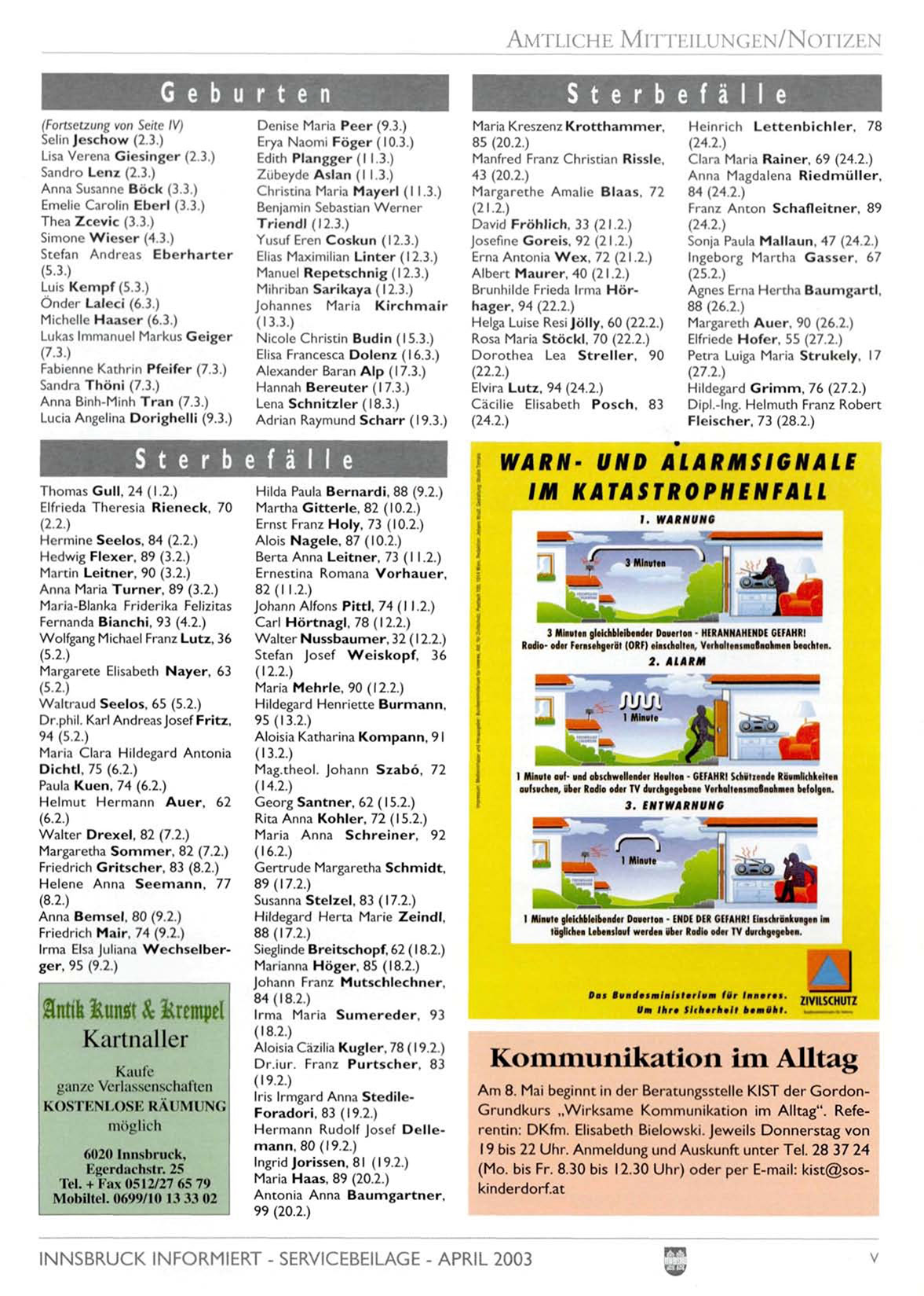 INNSBRUCK INFORMIERT - SERVICEBEILAGE - APRIL 2003
