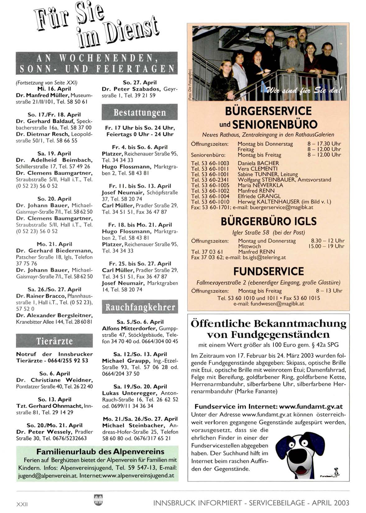 INNSBRUCK INFORMIERT - SERVICEBEILAGE - APRIL 2003