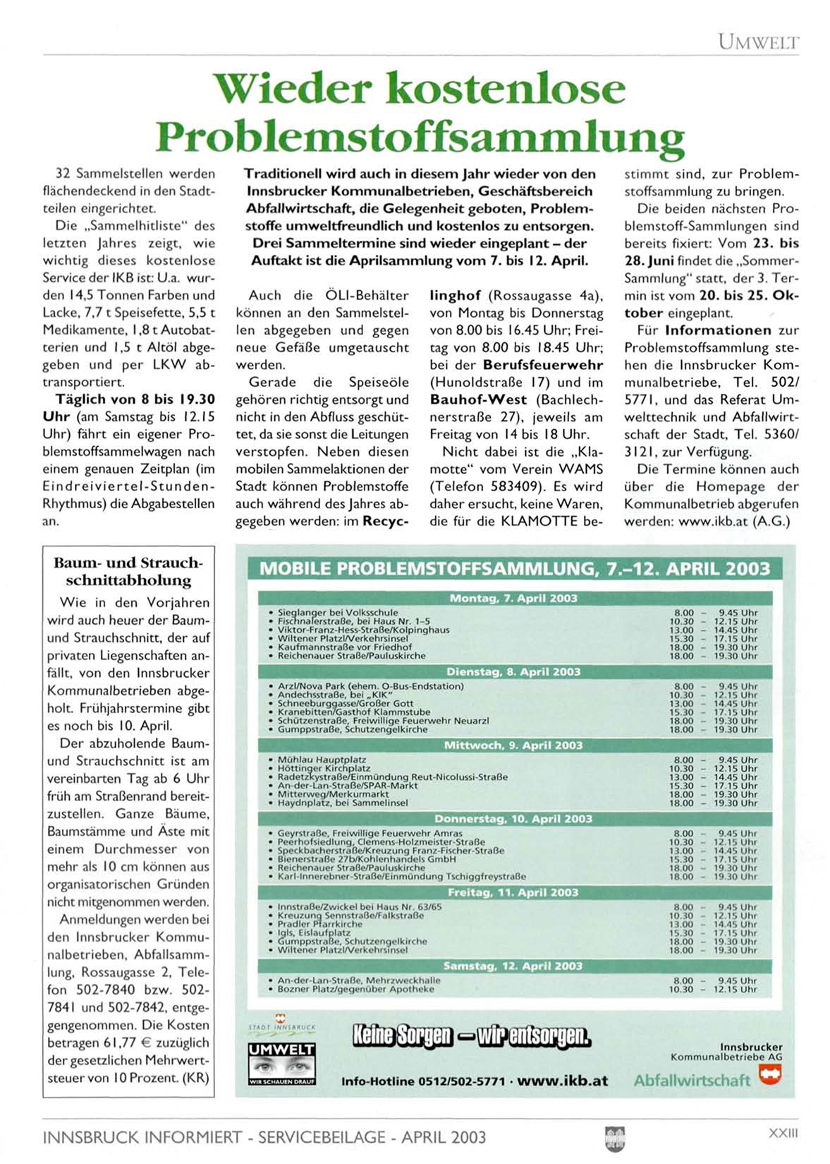 INNSBRUCK INFORMIERT - SERVICEBEILAGE - APRIL 2003