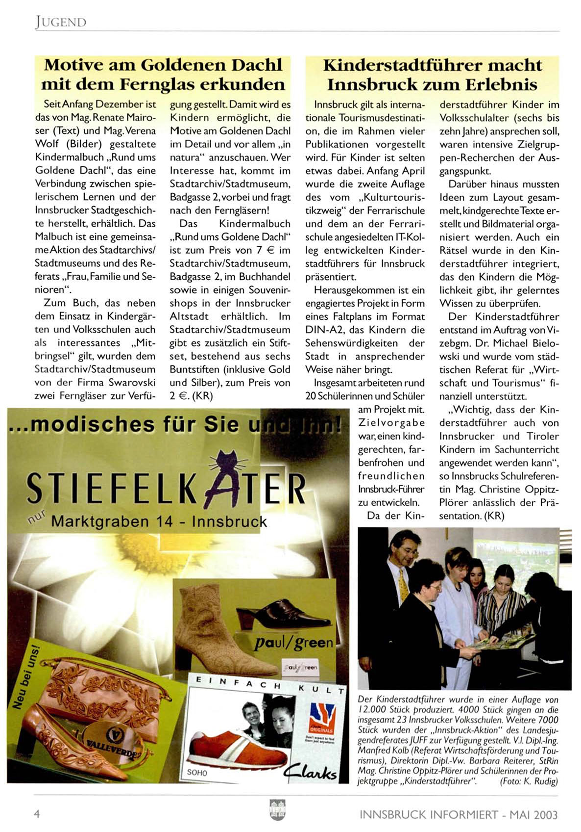 und dem an der Ferrarischule angesiedelten IT-Kolleg entwickelten Kinderstadtführers für Innsbruck