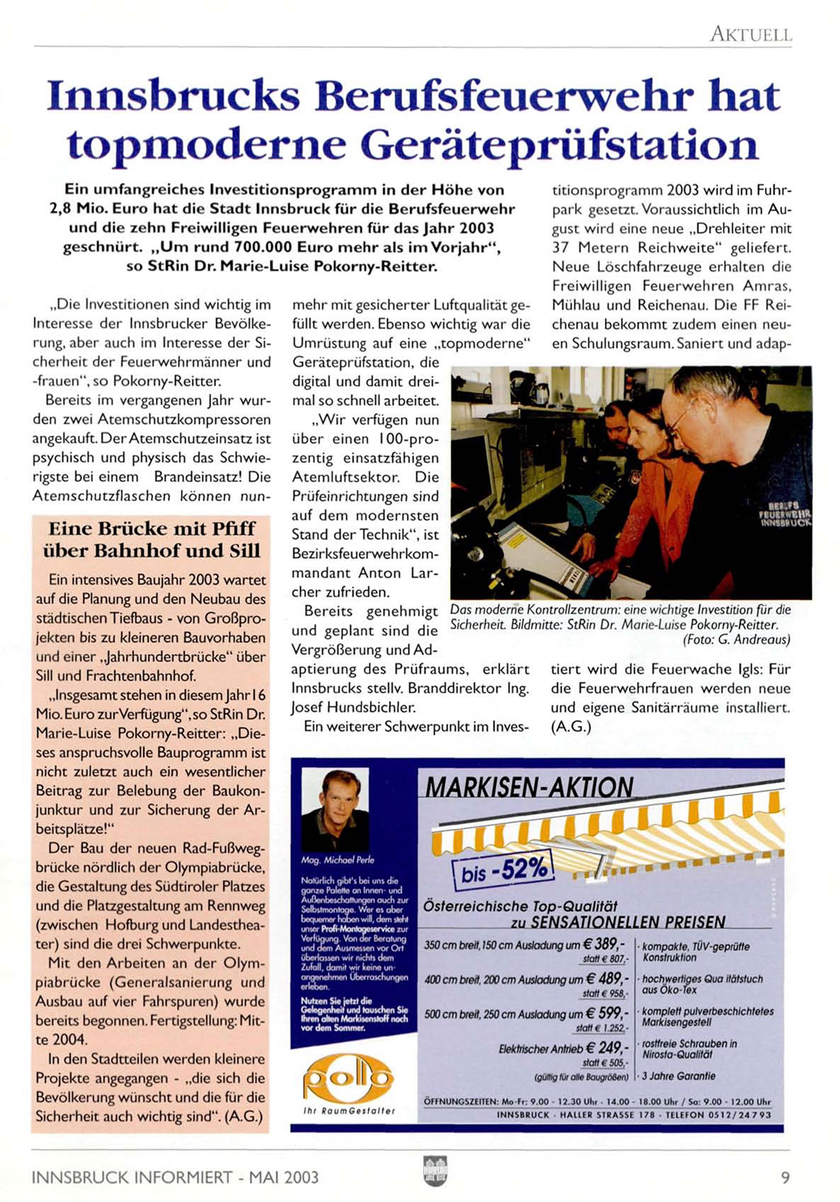 Interesse der Innsbrucker Bevölkerung, aber auch im Interesse der Sicherheit der Feuerwehrmänner und