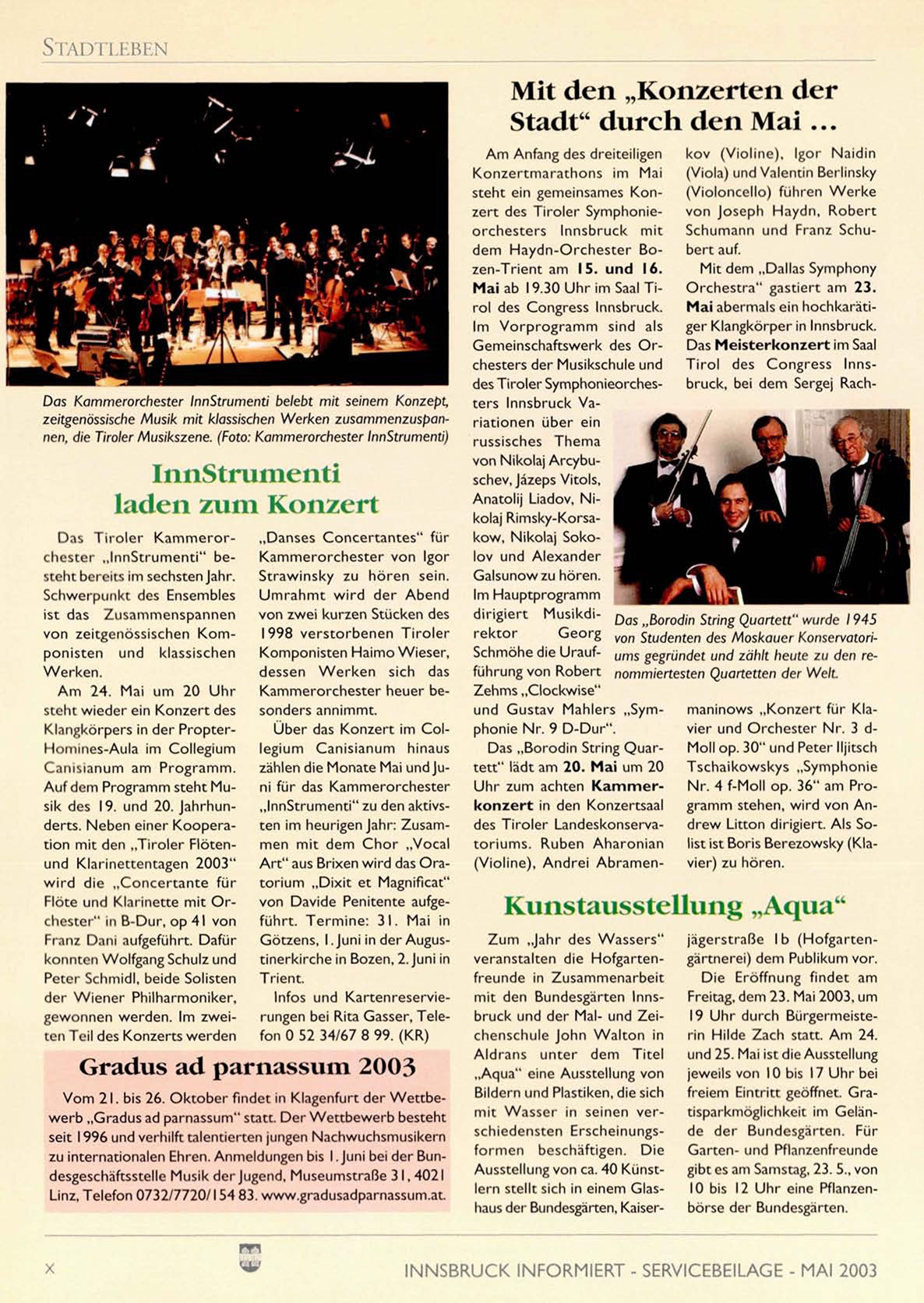 INNSBRUCK INFORMIERT - SERVICEBEILAGE - MAI 2003