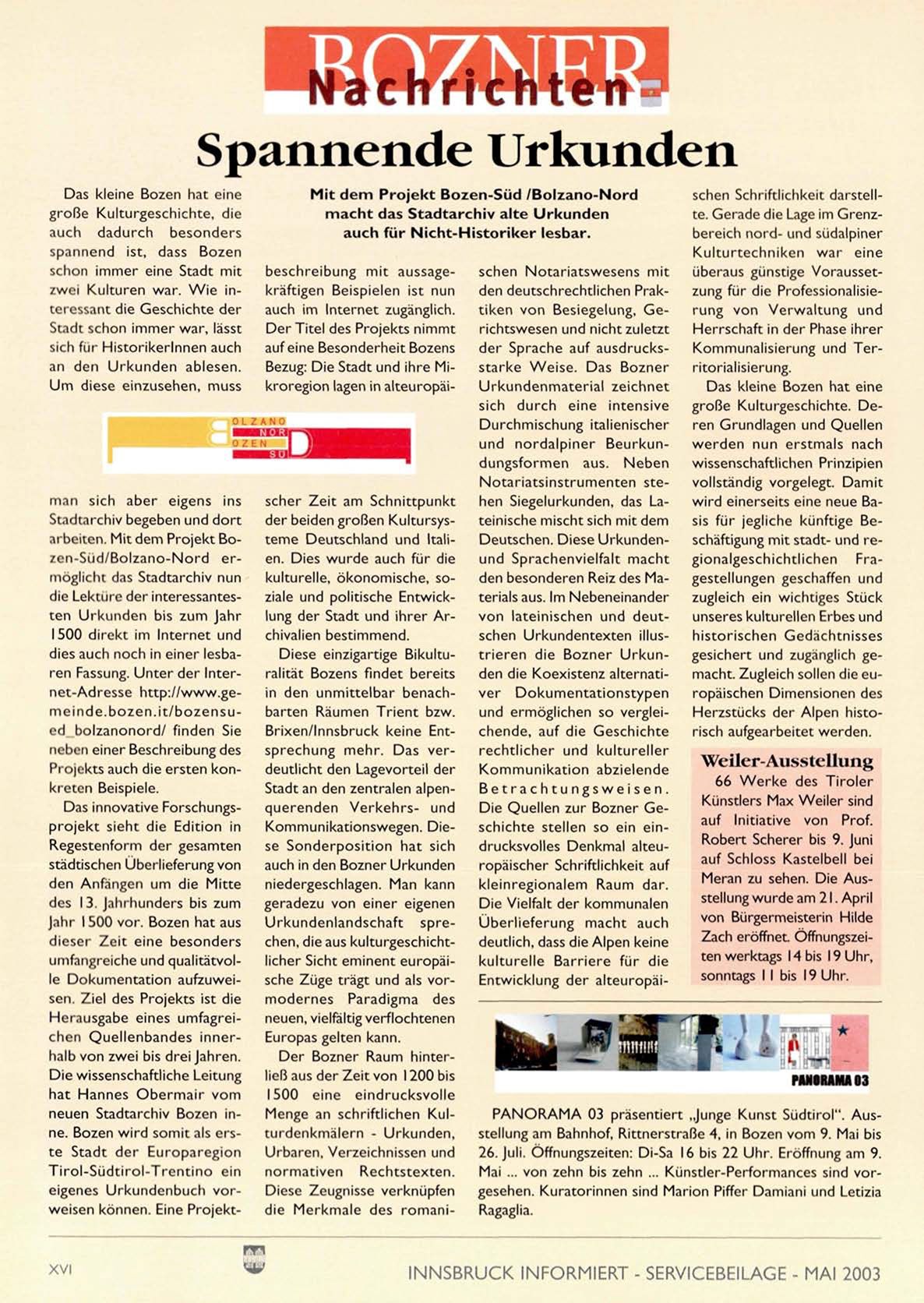 Die Quellen zur Bozner Geschichte stellen so ein eindrucksvolles Denkmal alteuropäischer Schriftlichkeit auf