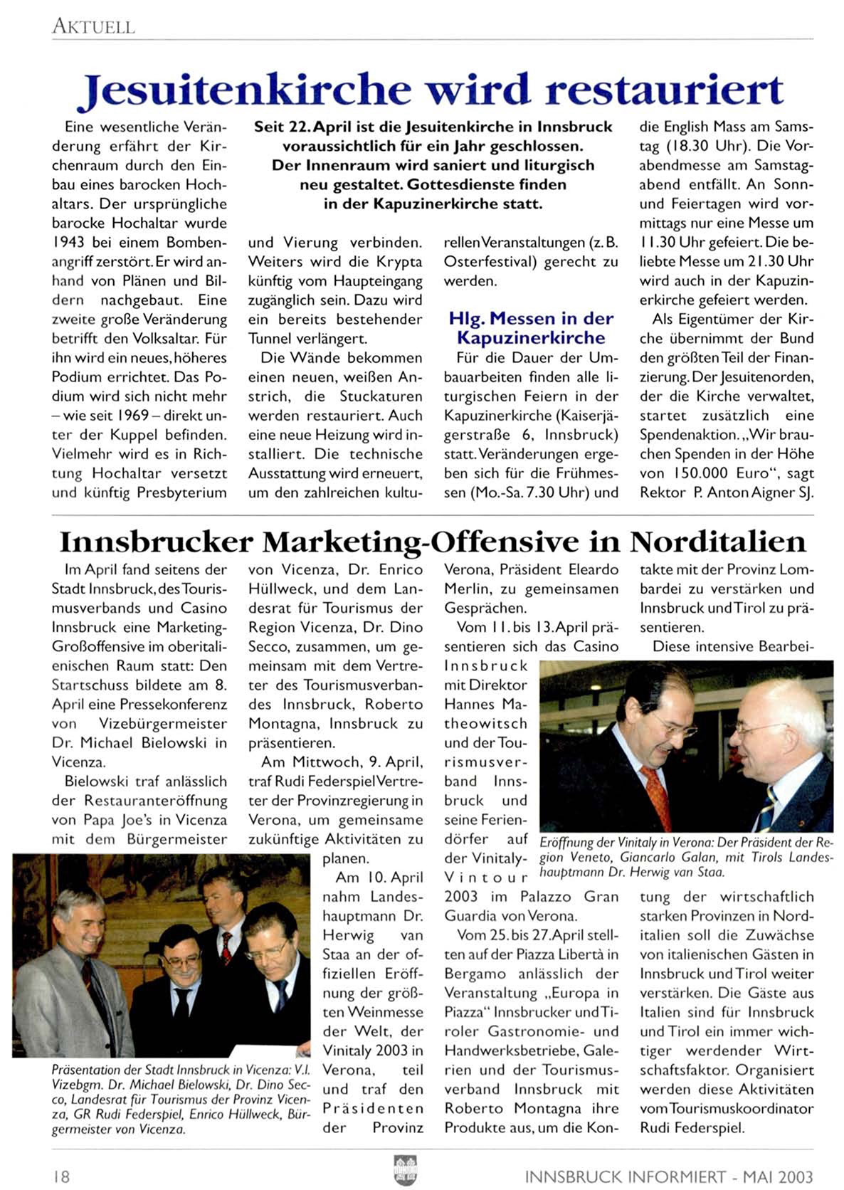 Innsbruck eine MarketingGroßoffensive im oberitalienischen Raum statt: Den