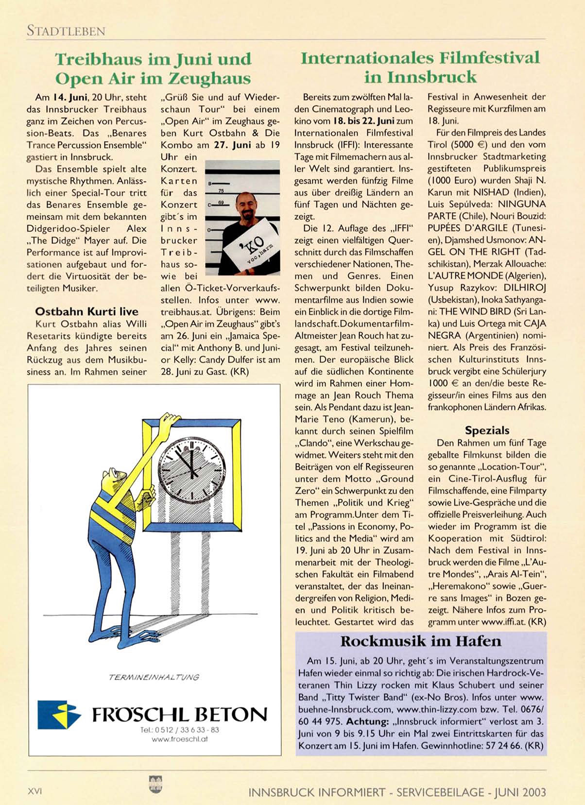 INNSBRUCK INFORMIERT - SERVICEBEILAGE -JUNI 2003