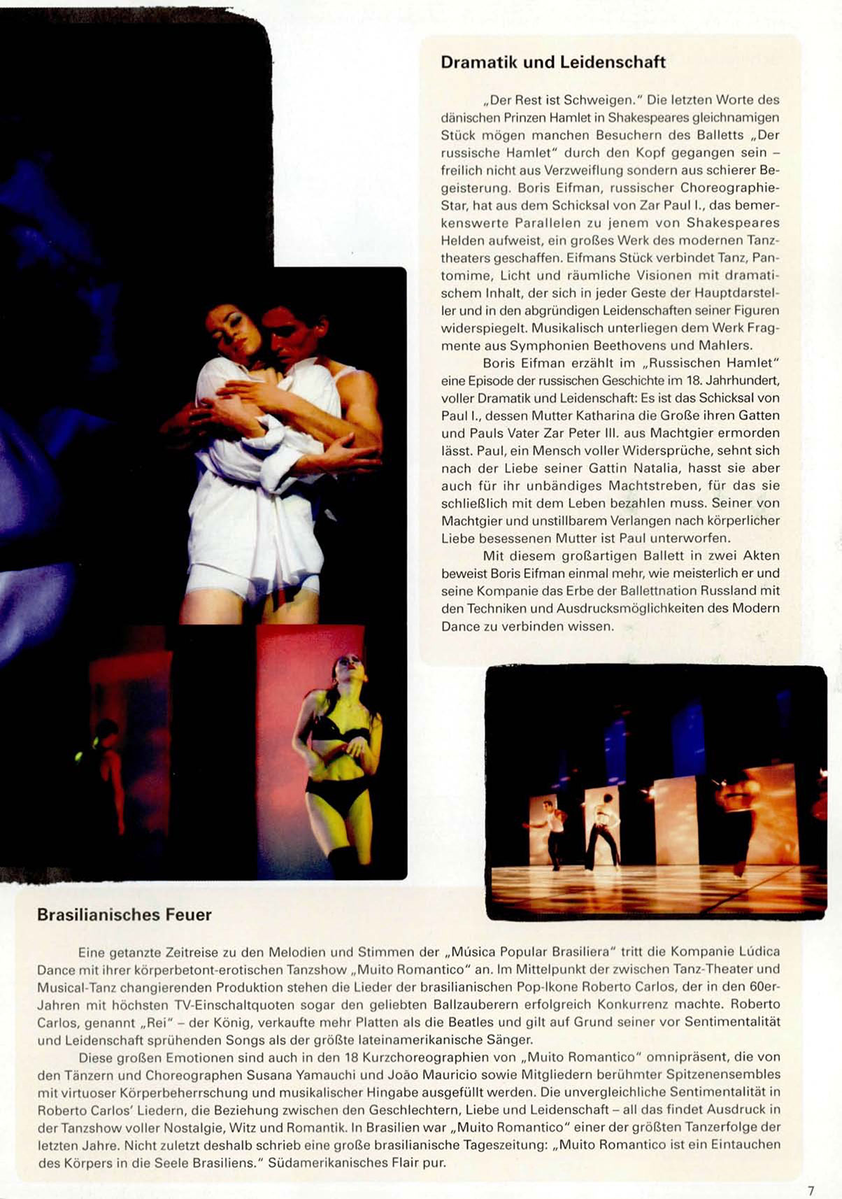 Dance mit ihrer körperbetont-erotischen Tanzshow „ M u i t o R o m a n t i c o " an. Im Mittelpunkt der zwischen Tanz-Theater und