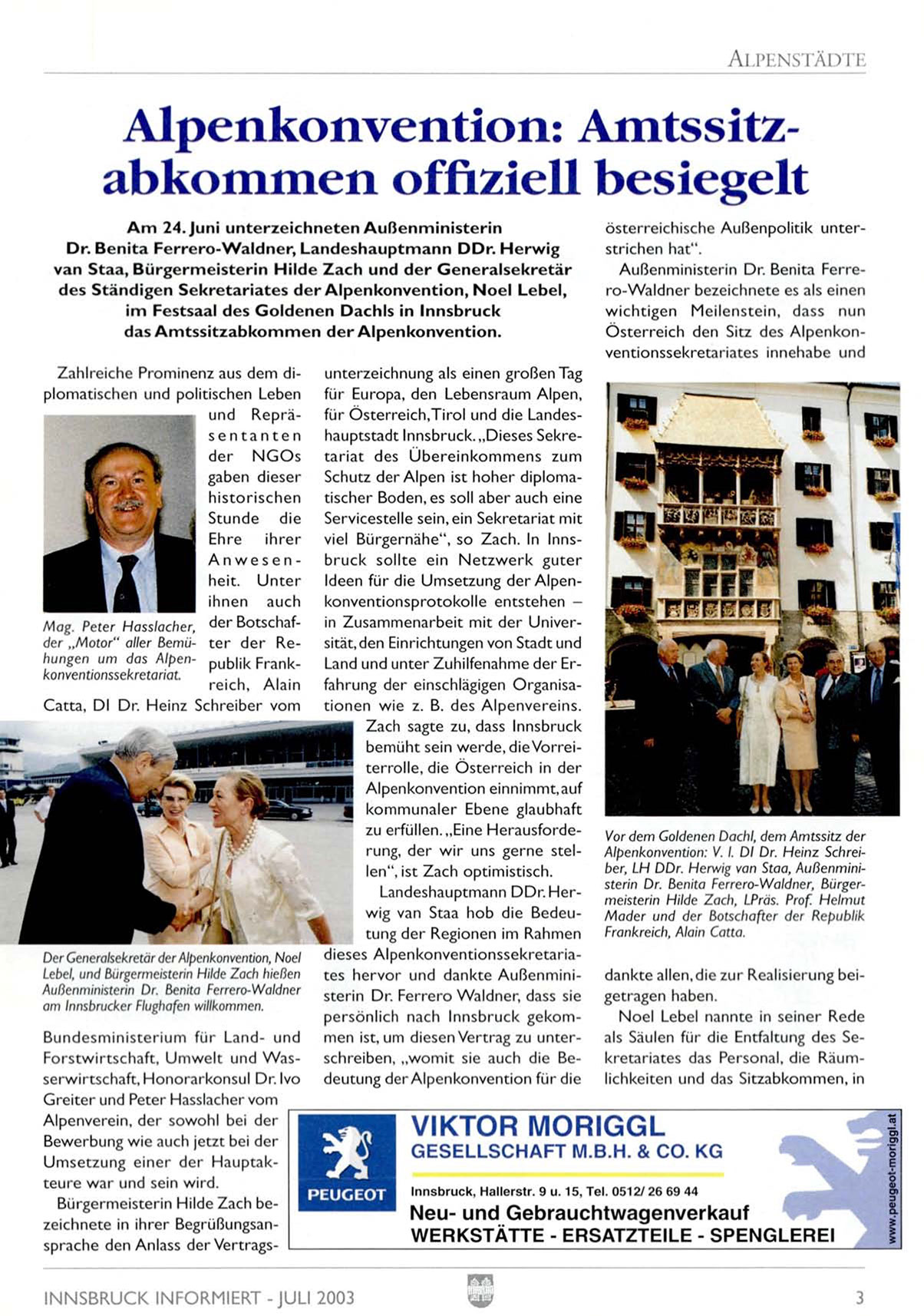 für Osterreich,Tirol und die Landeshauptstadt Innsbruck. „Dieses Sekretariat des Übereinkommens zum