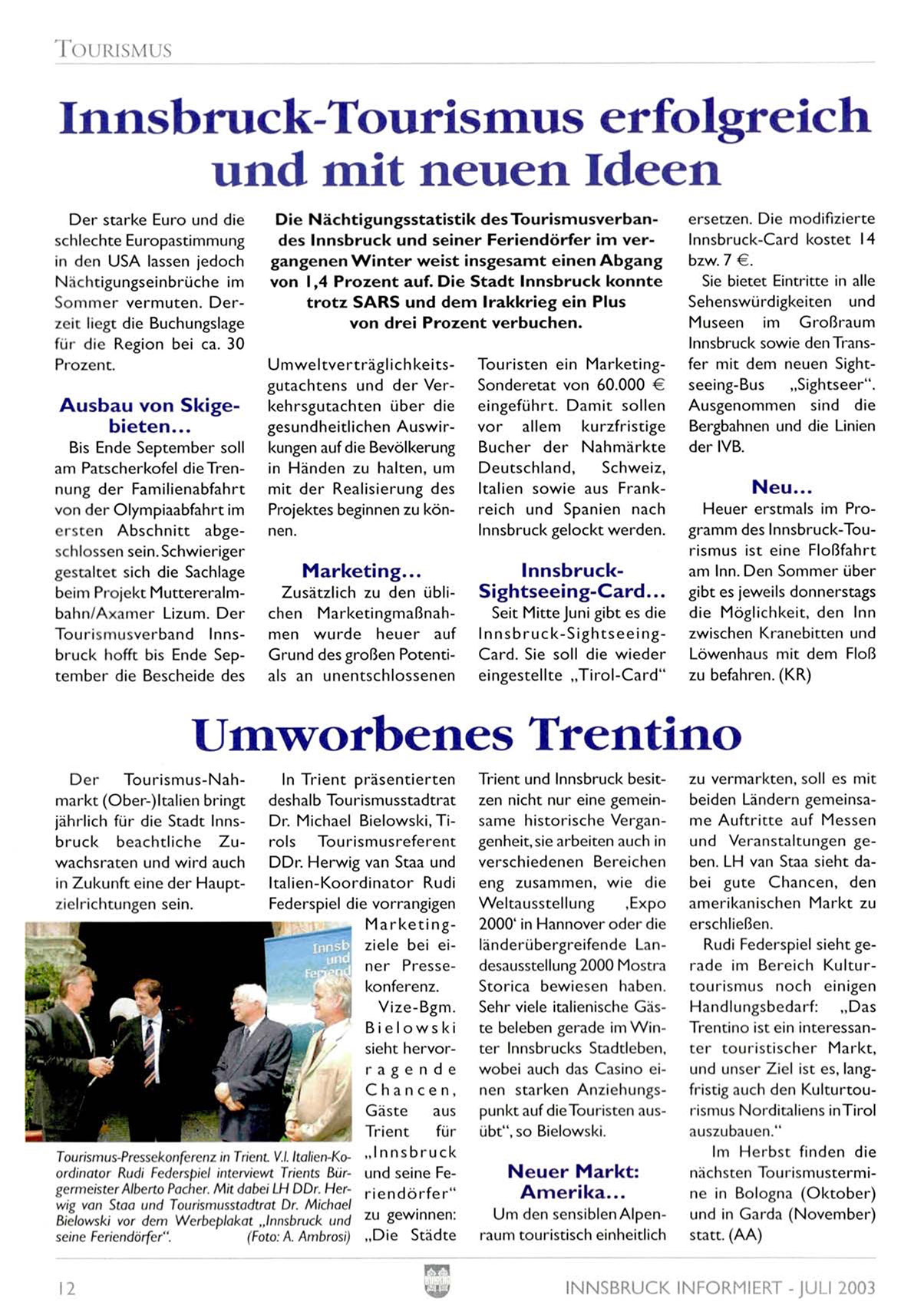 Tourismus-Pressekonferenz in Trient V.l. Italien-Ko- . . I n n s b r u c k