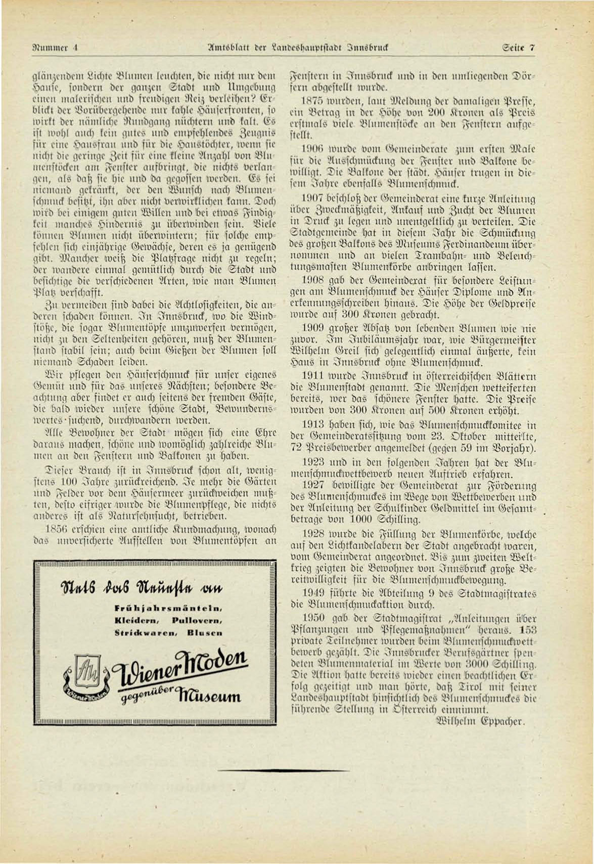 vom Gemeinderat angeordnet. B i s zum zweiten Weltkrieg zeigten die Bewohner von Innsbruck große Bereitwilligkeit für die Bluiueuschmuckbewogung.