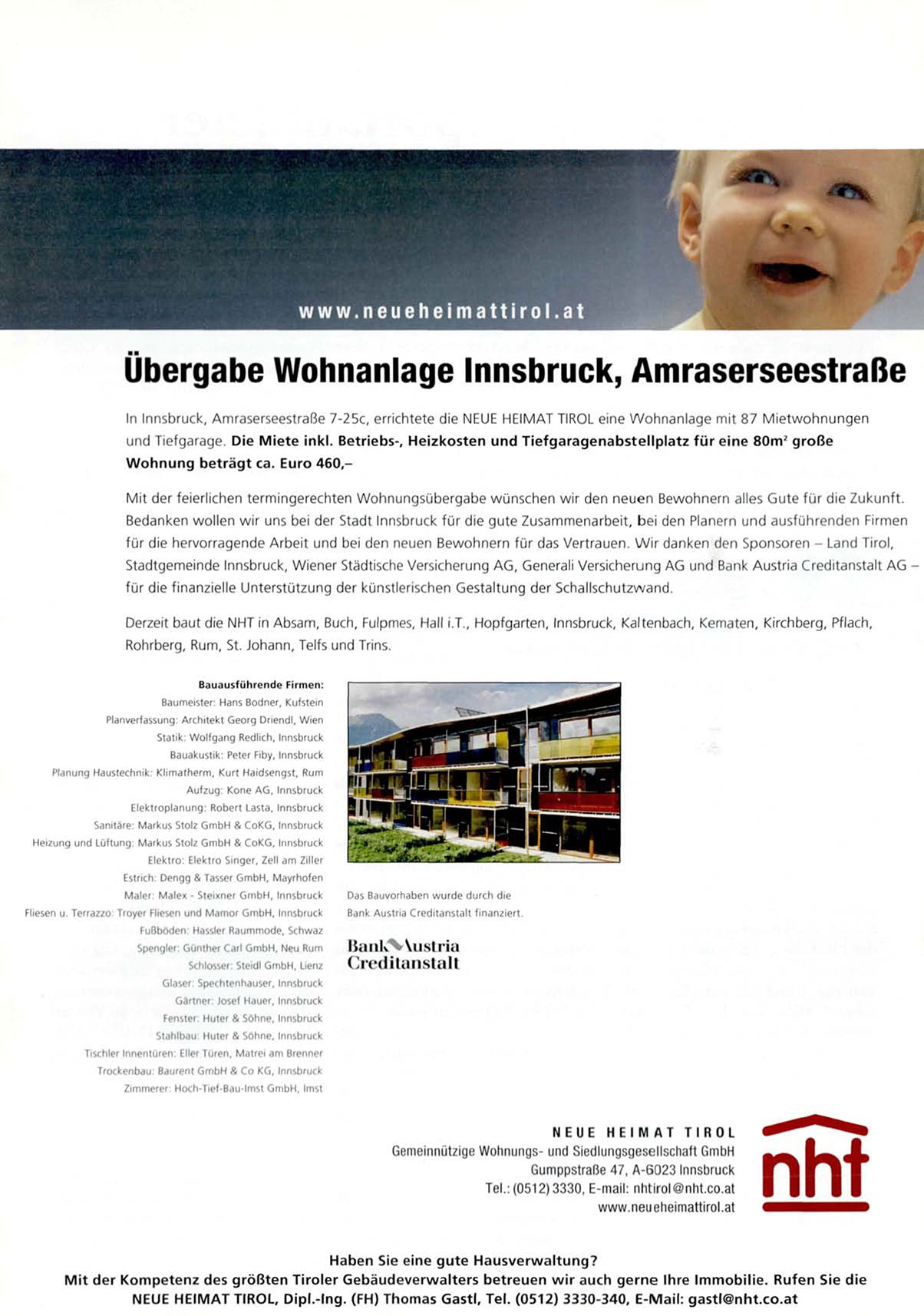 NEUE HEIMAT TIROL, Dipl.-Ing. (EH) Thomas Gastl, Tel. (0512) 3330-340, E-Mail: g a s t l @ n h t . c o . a t