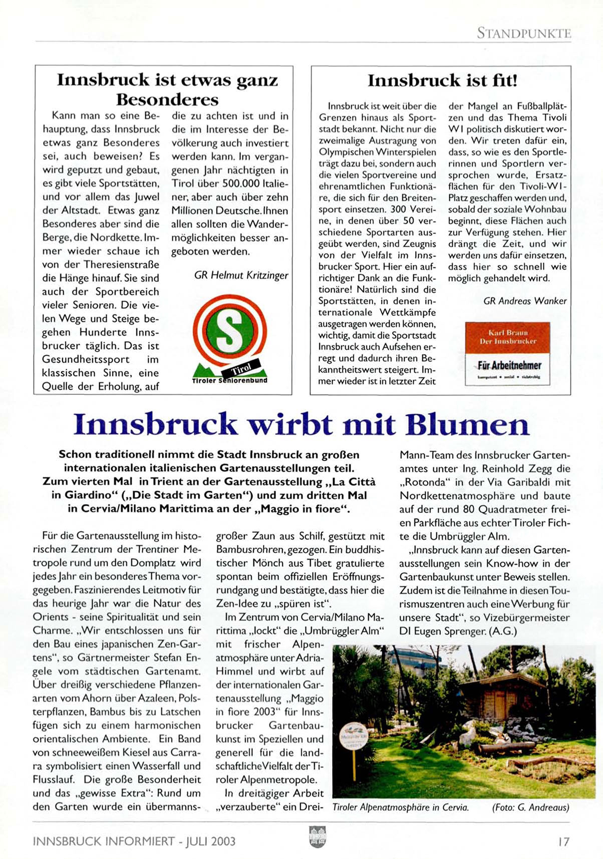 „Innsbruck kann auf diesen Gartenausstellungen sein Know-how in der
