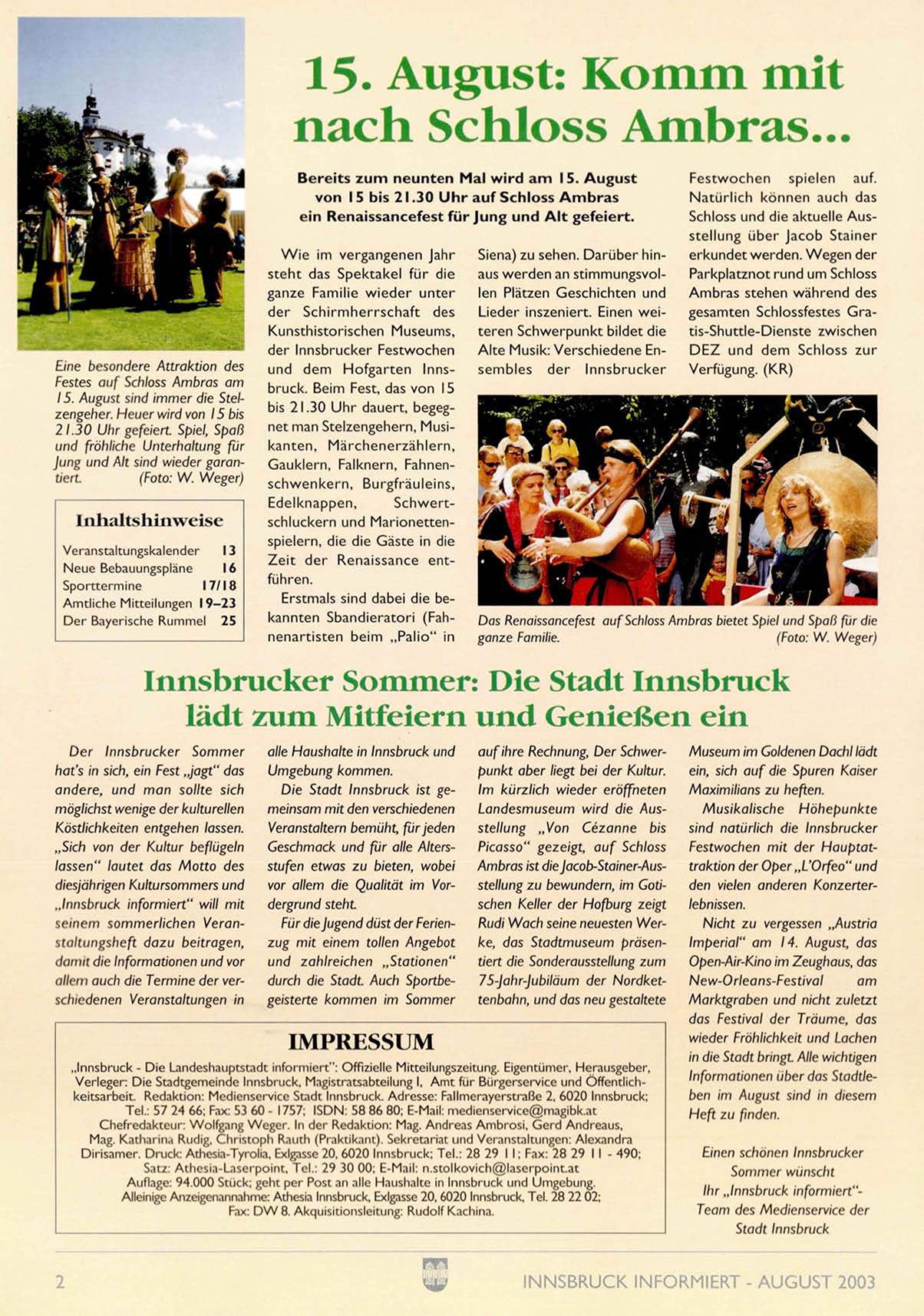 INNSBRUCK INFORMIERT - AUGUST 2003