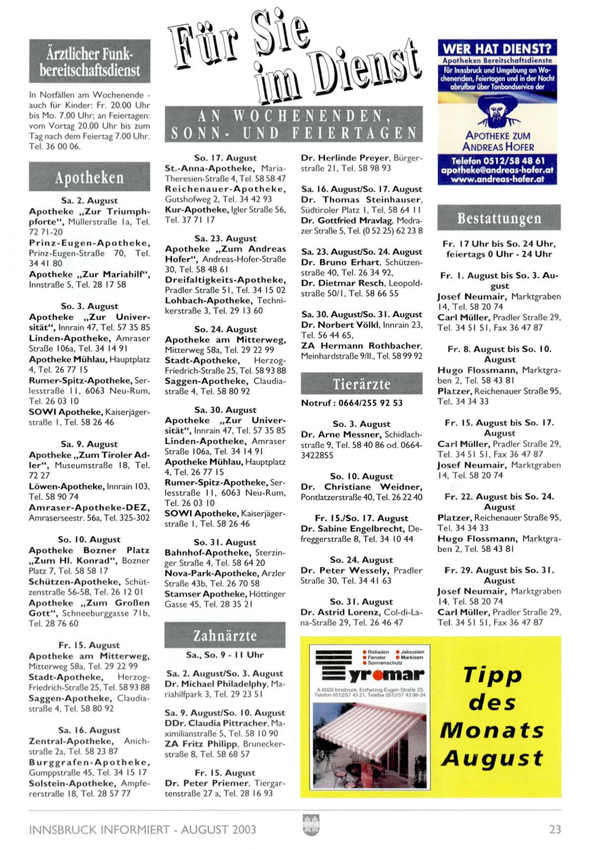 INNSBRUCK INFORMIERT - AUGUST 2003