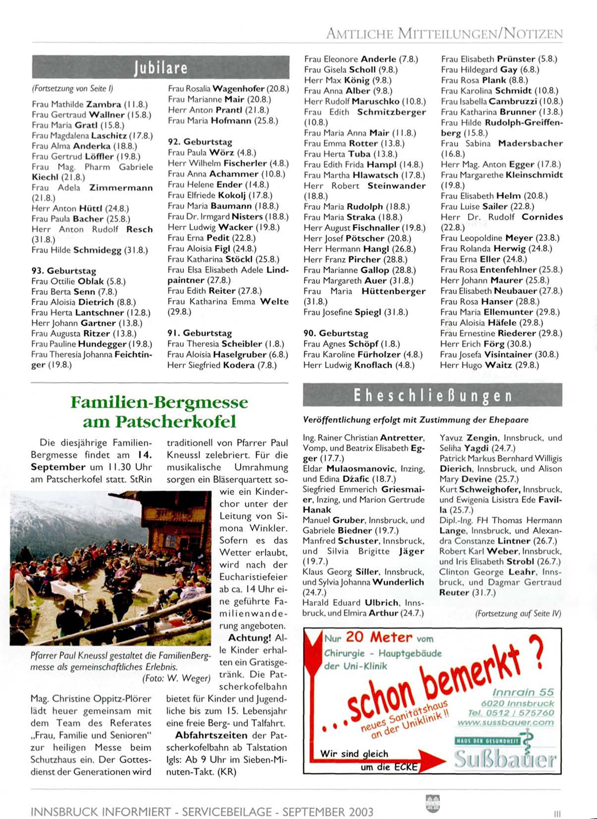 INNSBRUCK INFORMIERT - SERVICEBEILAGE - SEPTEMBER 2003