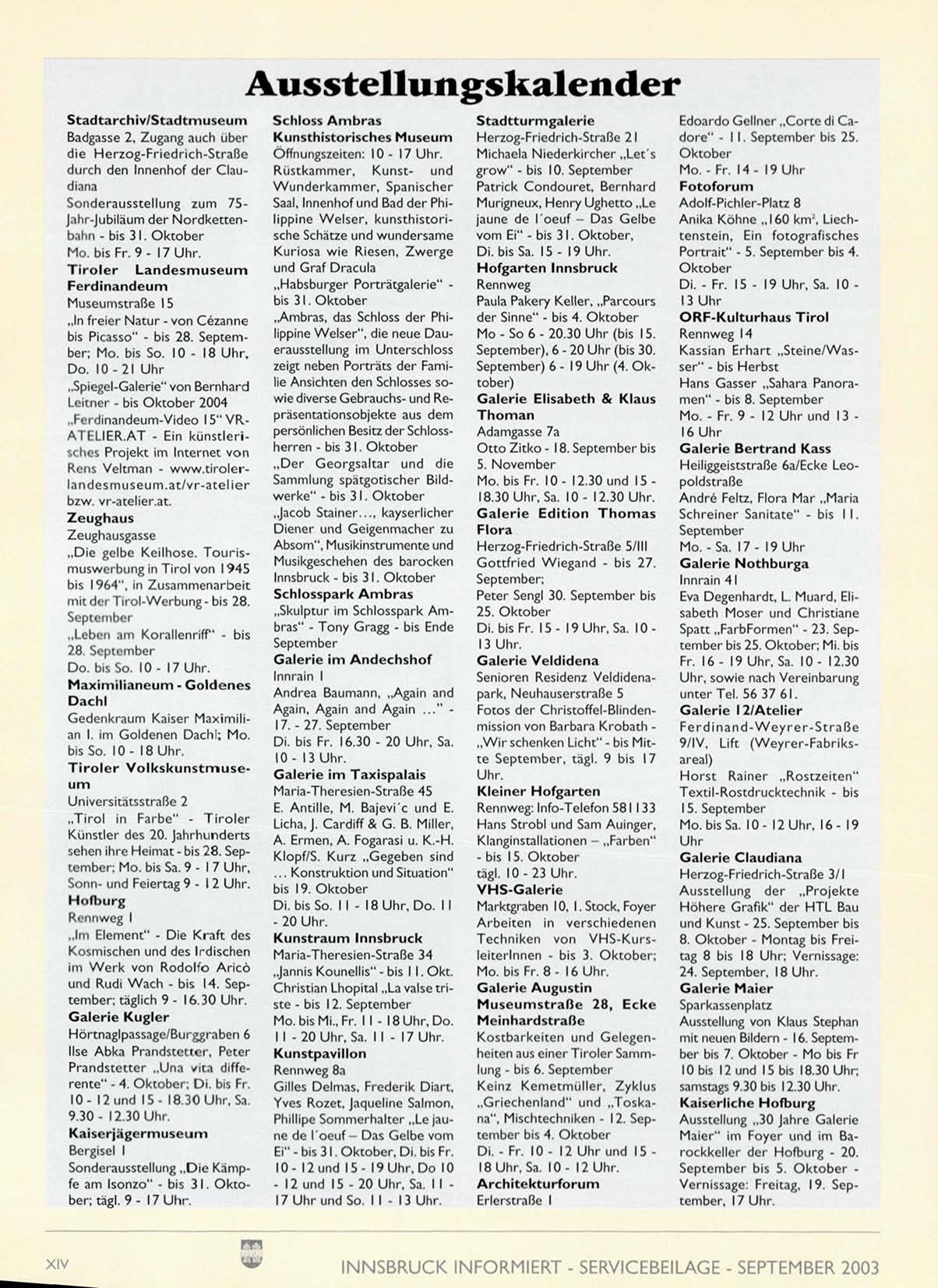 INNSBRUCK INFORMIERT - SERVICEBEILAGE - SEPTEMBER 2003