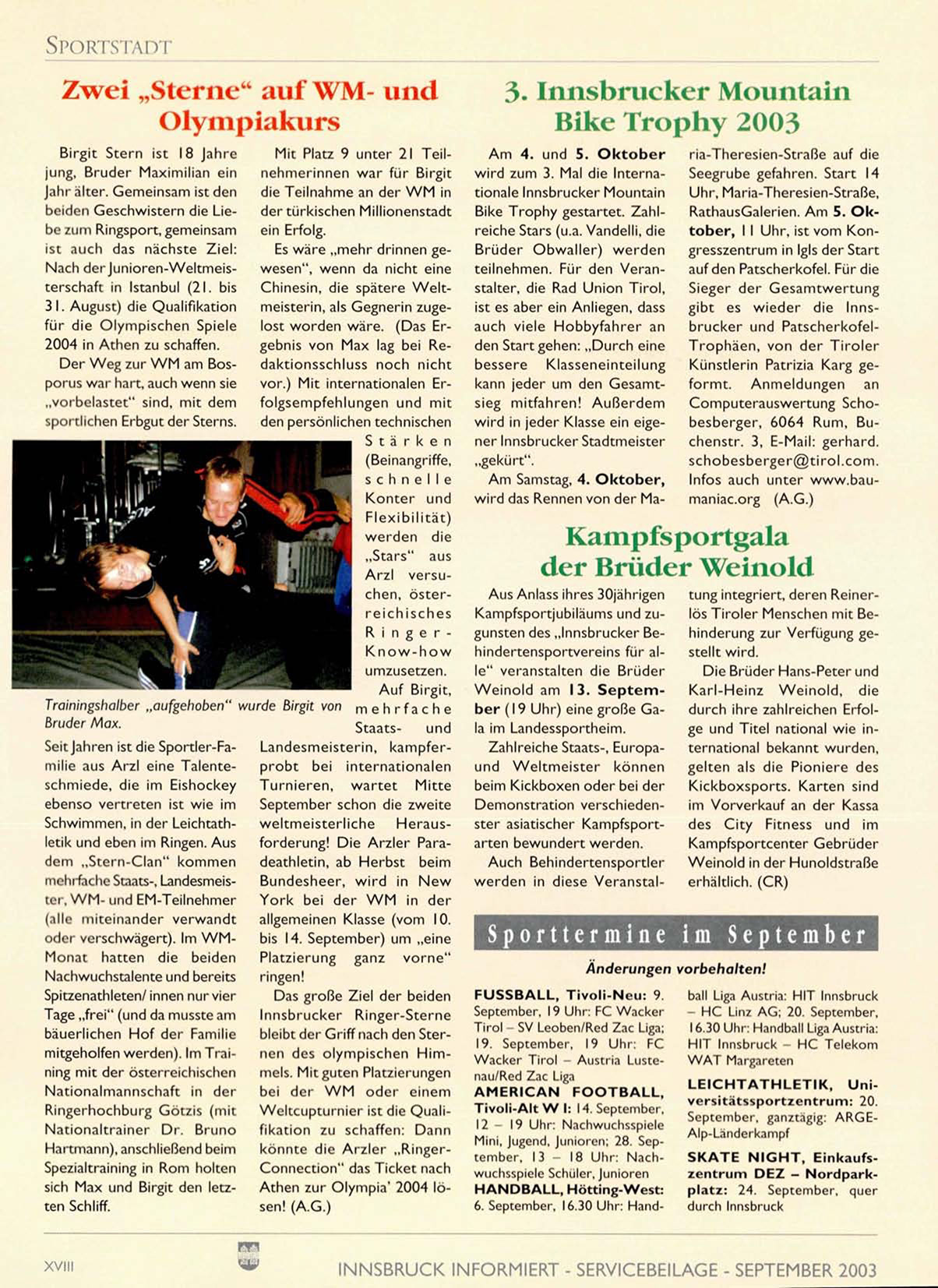 INNSBRUCK INFORMIERT - SERVICEBEILAGE - SEPTEMBER 2003