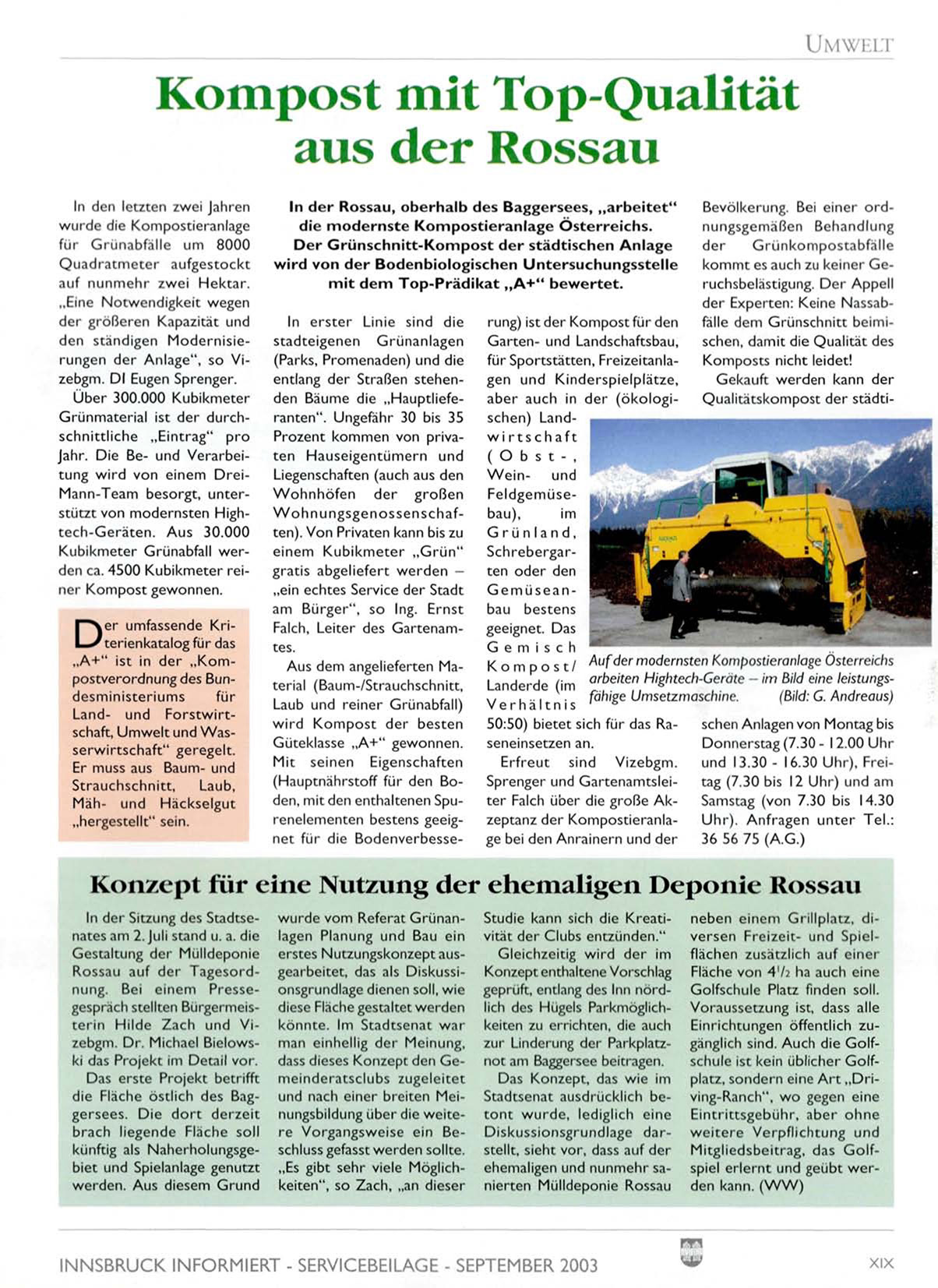 INNSBRUCK INFORMIERT - SERVICEBEILAGE - SEPTEMBER 2003