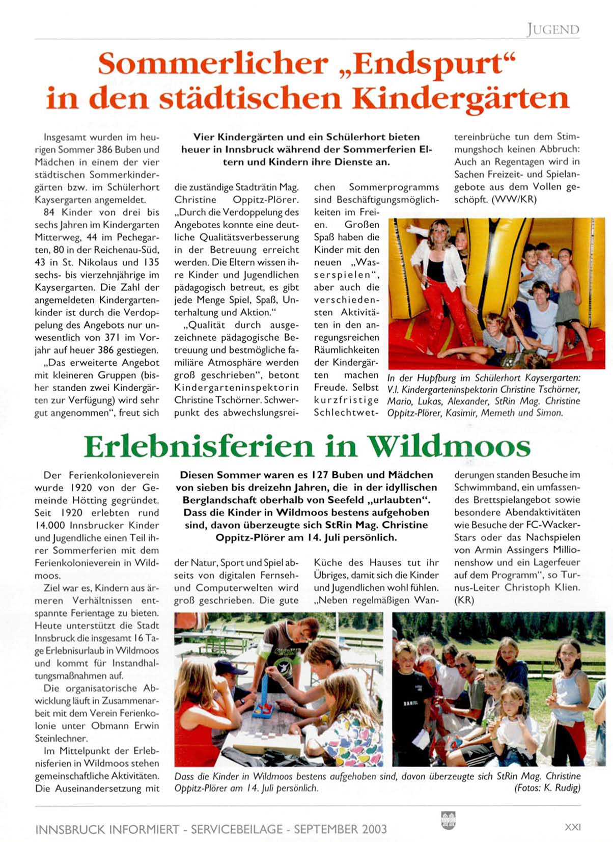 INNSBRUCK INFORMIERT - SERVICEBEILAGE - SEPTEMBER 2003