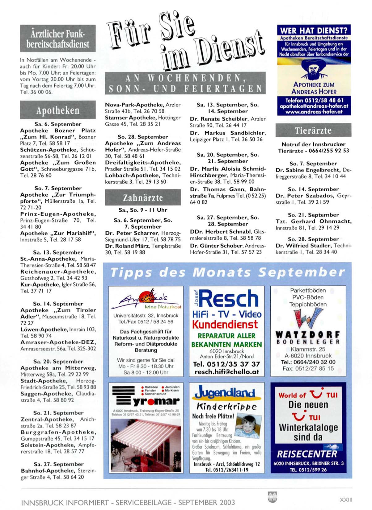 INNSBRUCK INFORMIERT - SERVICEBEILAGE - SEPTEMBER 2003