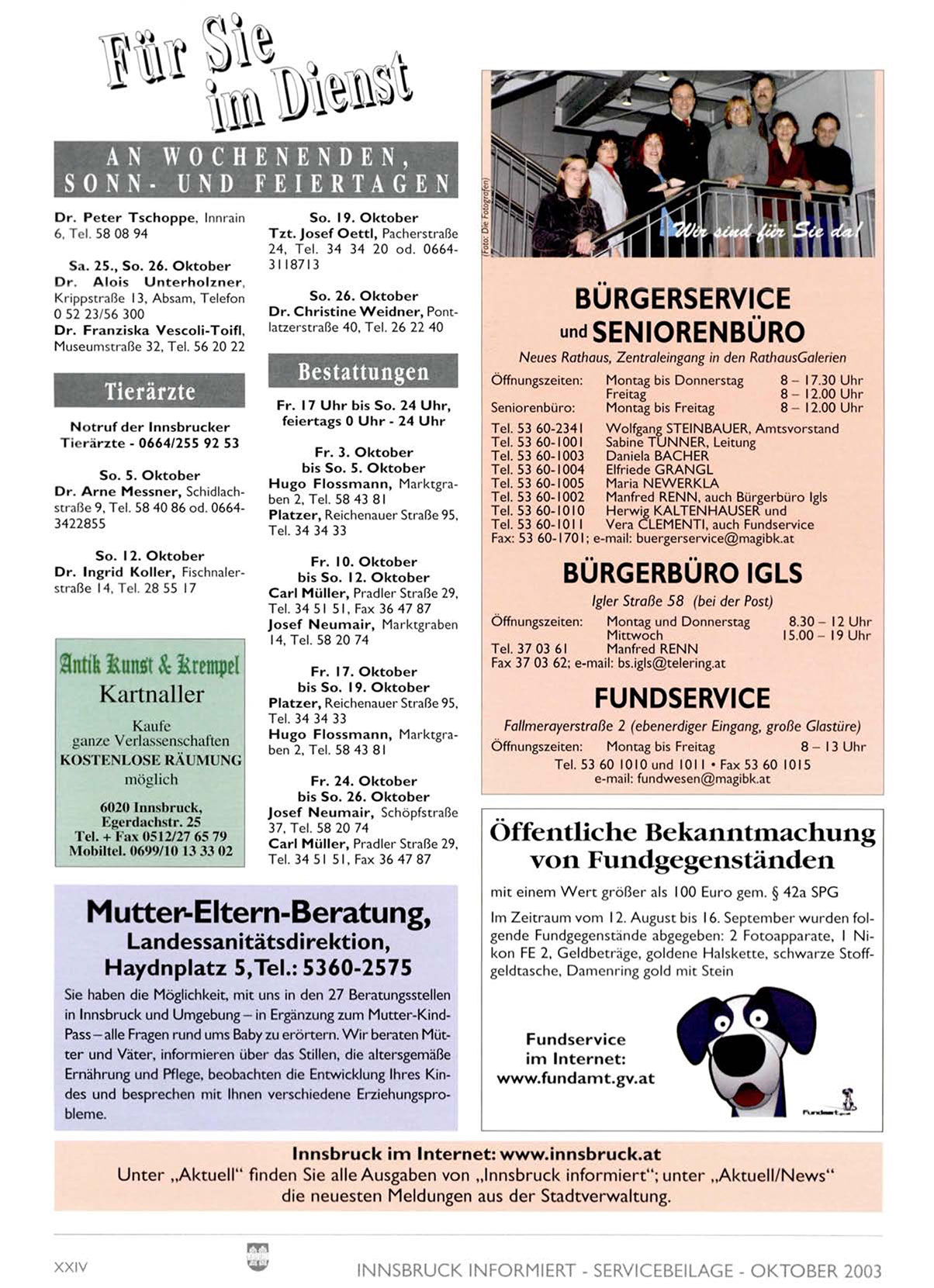 INNSBRUCK INFORMIERT - SERVICEBEILAGE - OKTOBER 2003