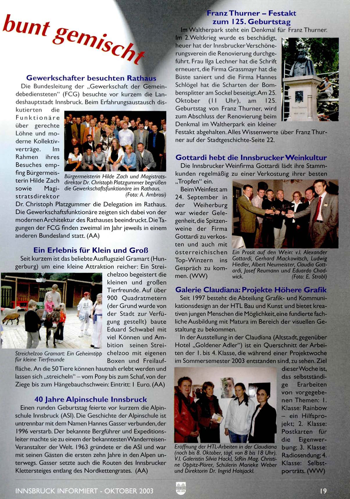 Festakt abgehalten. Alles Wissenwerte über Franz Thurner auf der Stadtgeschichte-Seite 22.