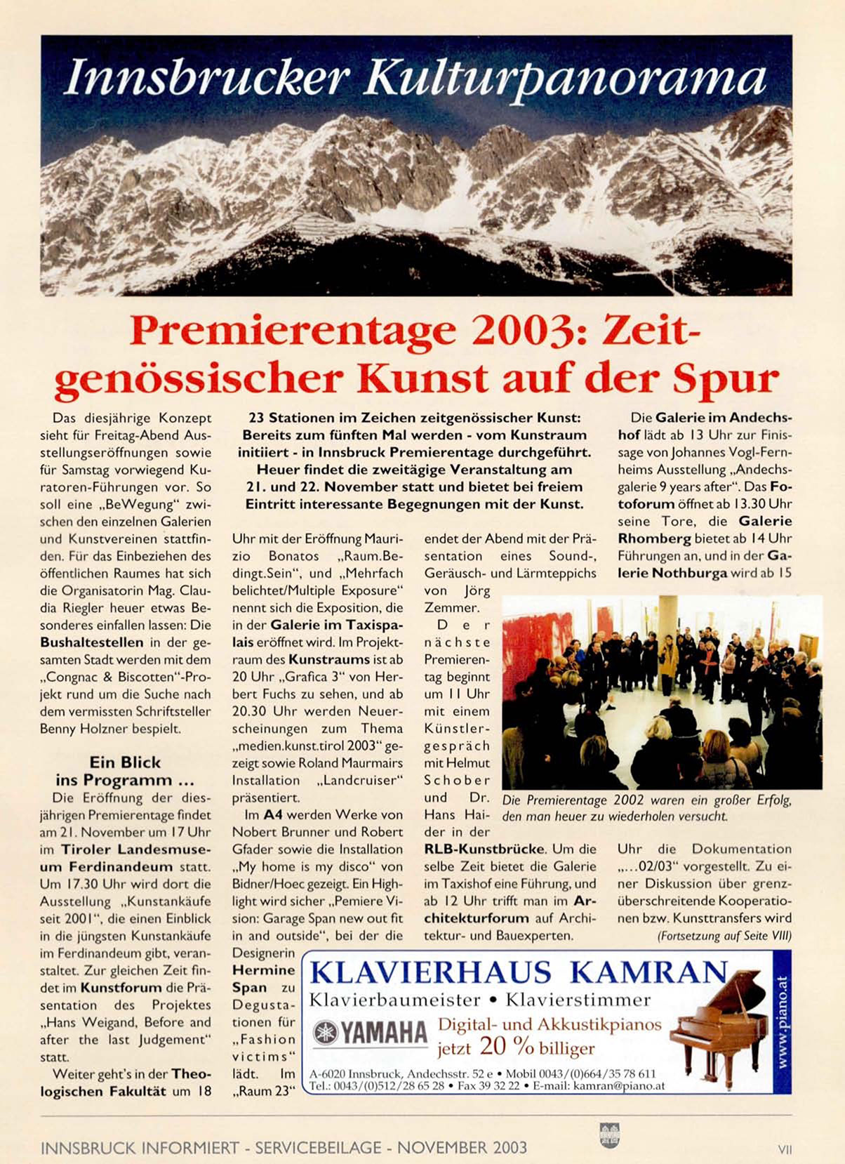 „medien.kunst.tirol 2003" gezeigt sowie Roland Maurmairs