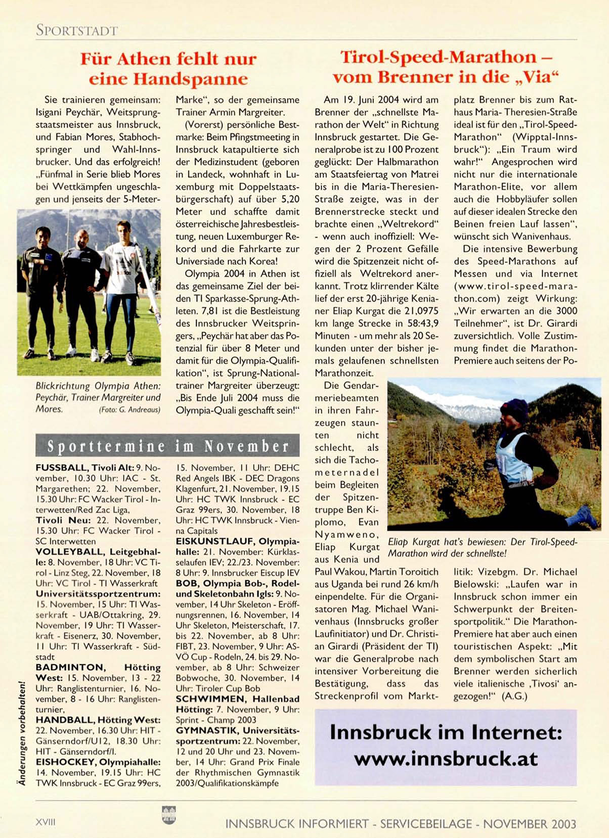 INNSBRUCK INFORMIERT - SERVICEBEILAGE - NOVEMBER 2003