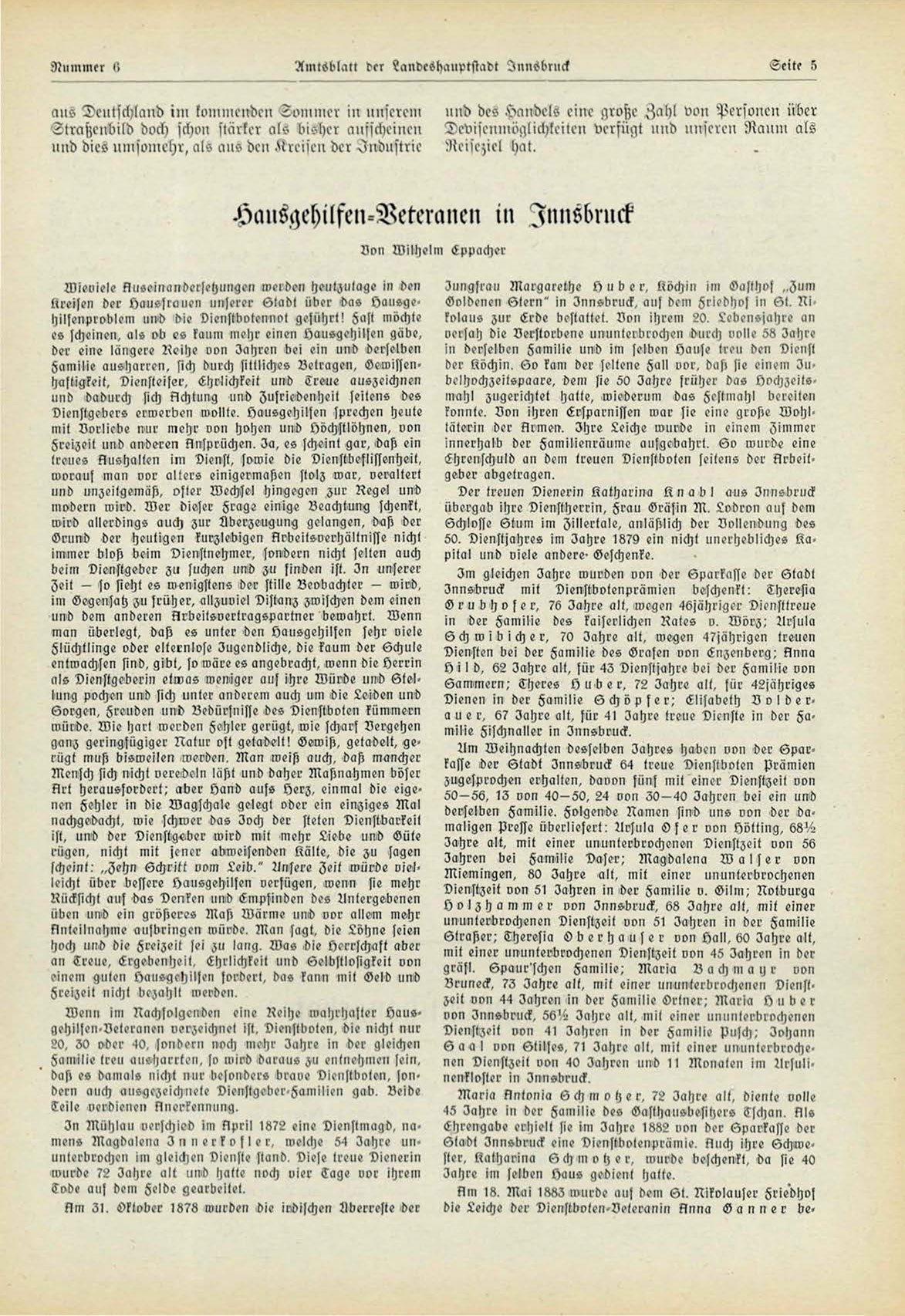 Innsbruck mit Dienftbotenprämien beschenkt: Theresia