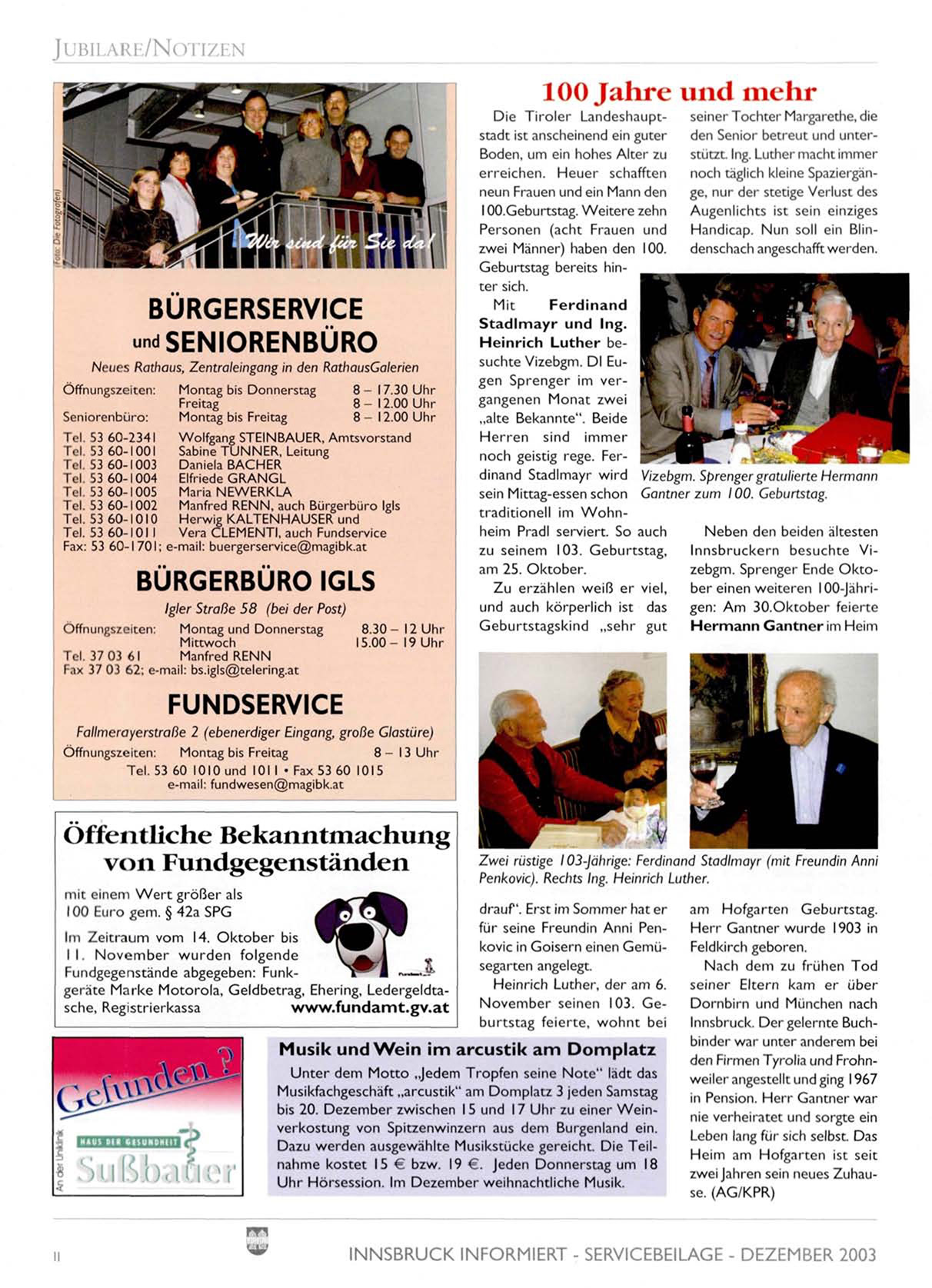 INNSBRUCK INFORMIERT - SERVICEBEILAGE - DEZEMBER 2003