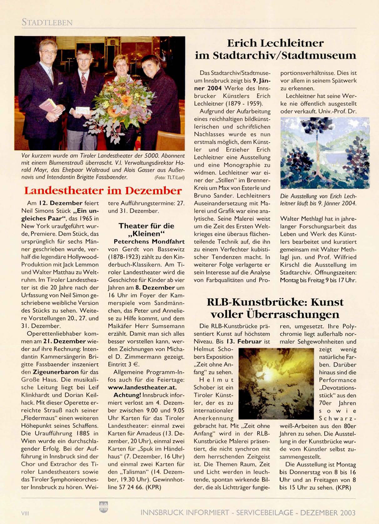 INNSBRUCK INFORMIERT - SERVICEBEILAGE - DEZEMBER 2003