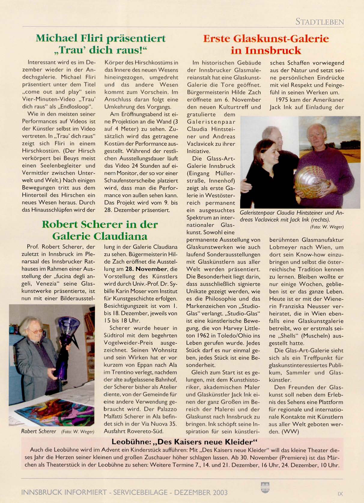 zuletzt in Innsbruck im Plenarsaal des Innsbrucker Rathauses im Rahmen einer Ausstellung der „fucina degli angeli, Venezia" seine Glaskunstwerke präsentierte, ist