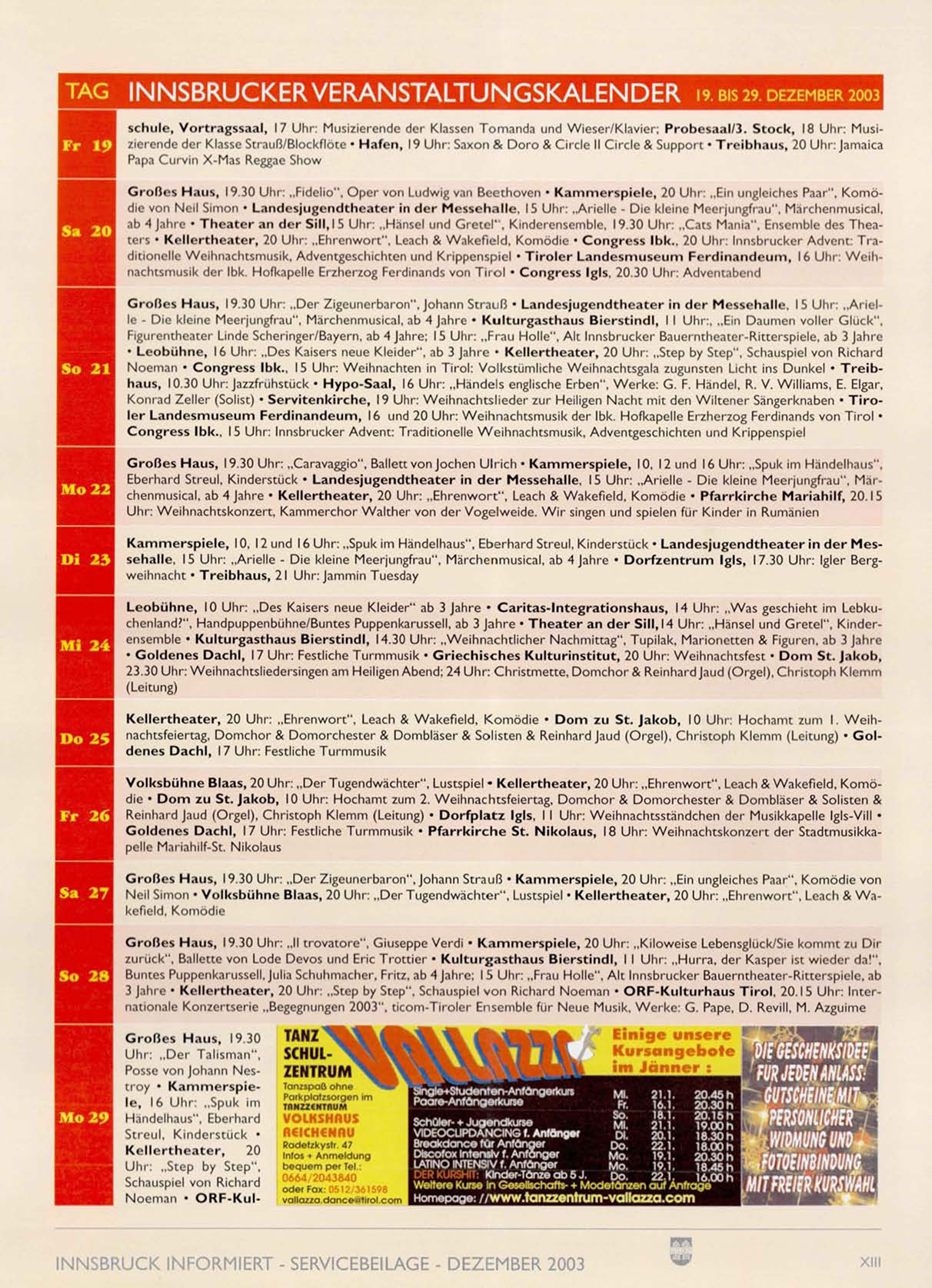 INNSBRUCK INFORMIERT - SERVICEBEILAGE - DEZEMBER 2003
